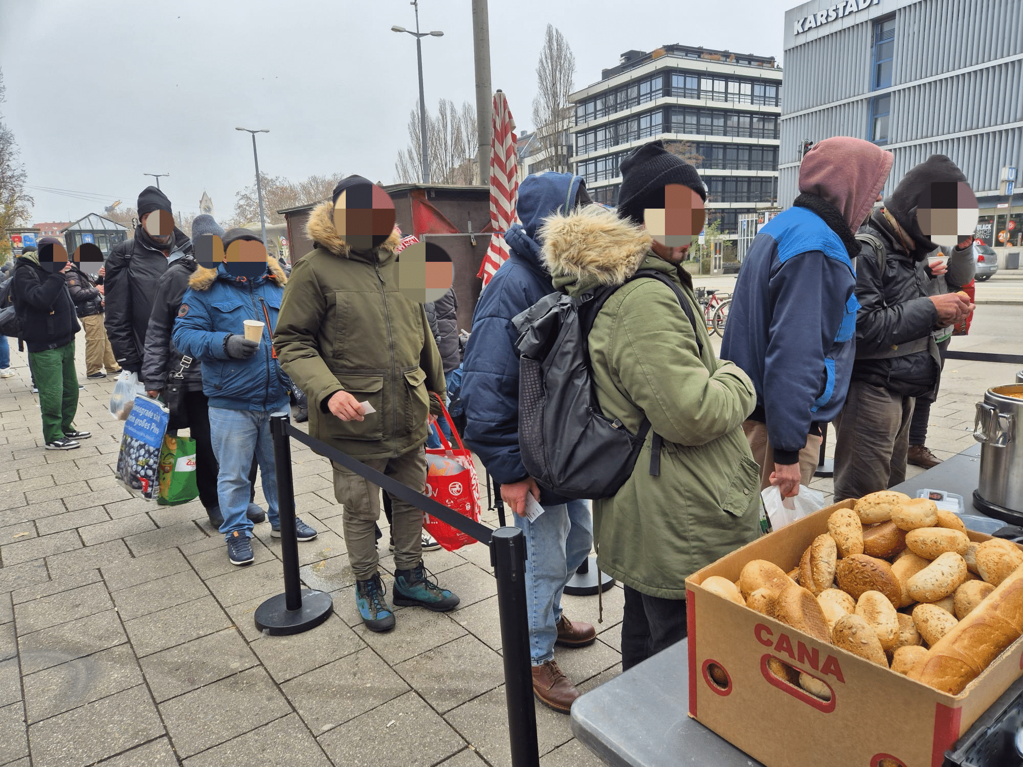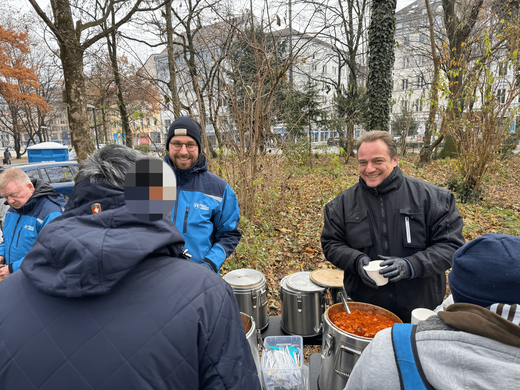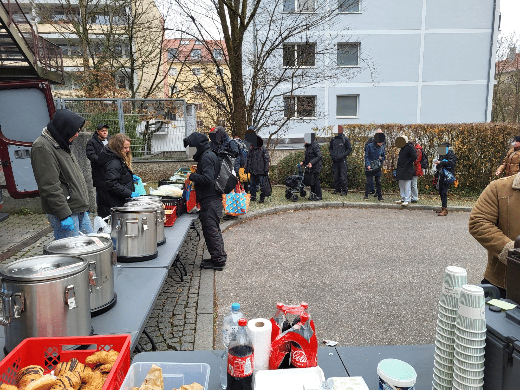 Am vergangenen Sonntag waren wir wieder auf den Straßen Münchens unterwegs, um unsere Gäste in der kalten Jahreszeit zu unterstützen. Mit dabei hatten wir warme Kleidung, Lebensmittel, Hygieneartikel sowie frisch zubereitete warme Speisen und heiße Getränke wie Kaffee und Tee.
