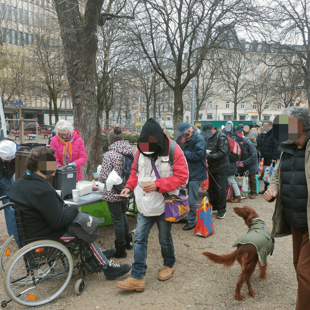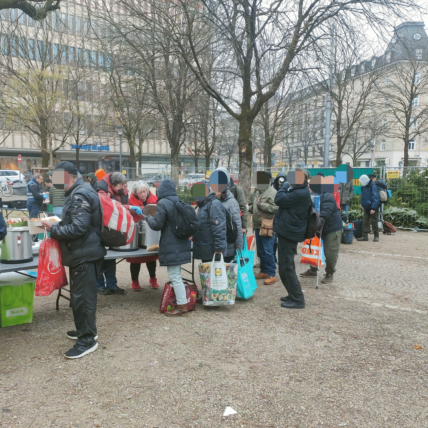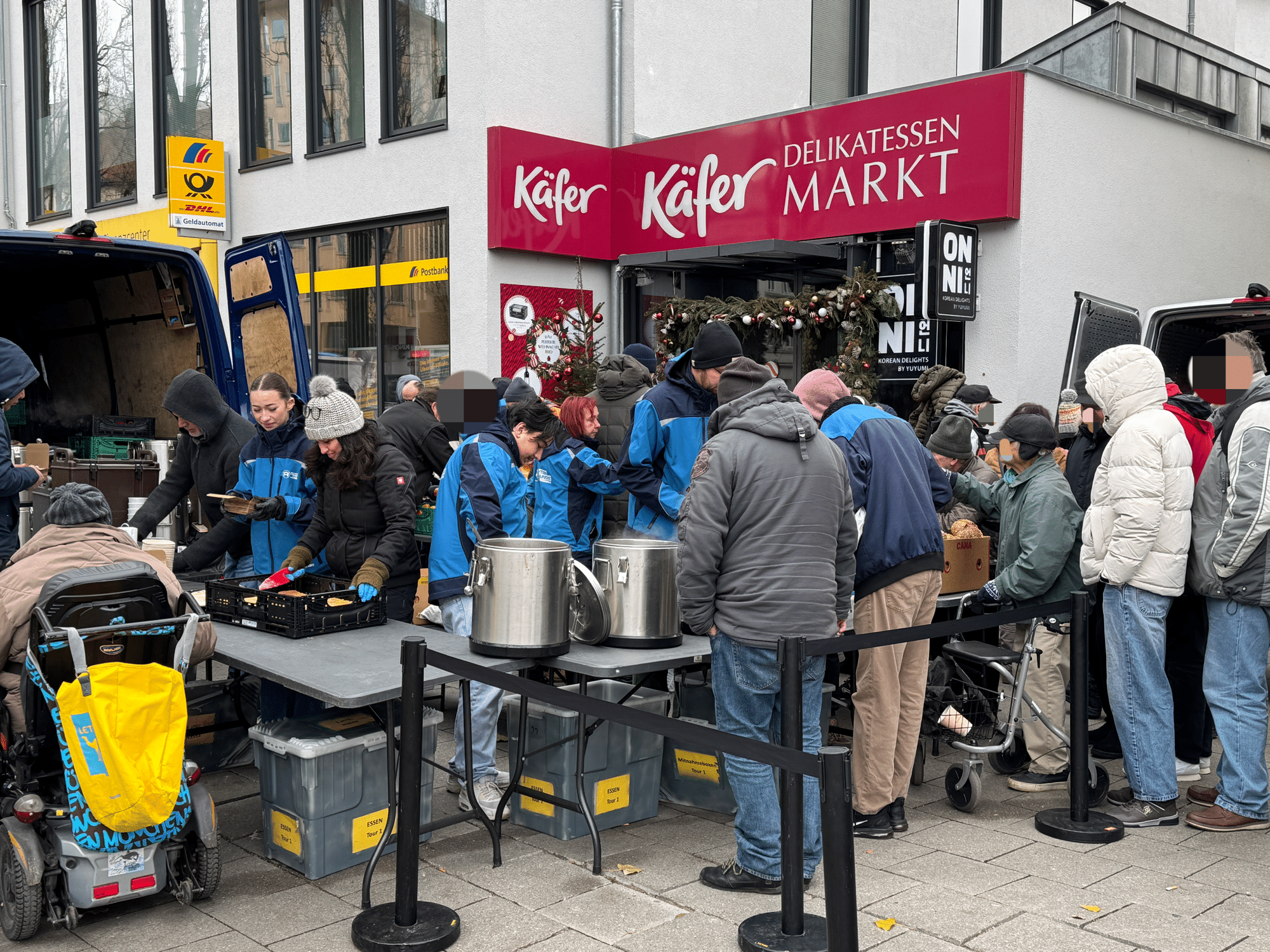Am vergangenen Sonntag waren wir wieder auf den Straßen Münchens unterwegs, um unsere Gäste in der kalten Jahreszeit zu unterstützen. Mit dabei hatten wir warme Kleidung, Lebensmittel, Hygieneartikel sowie frisch zubereitete warme Speisen und heiße Getränke wie Kaffee und Tee.