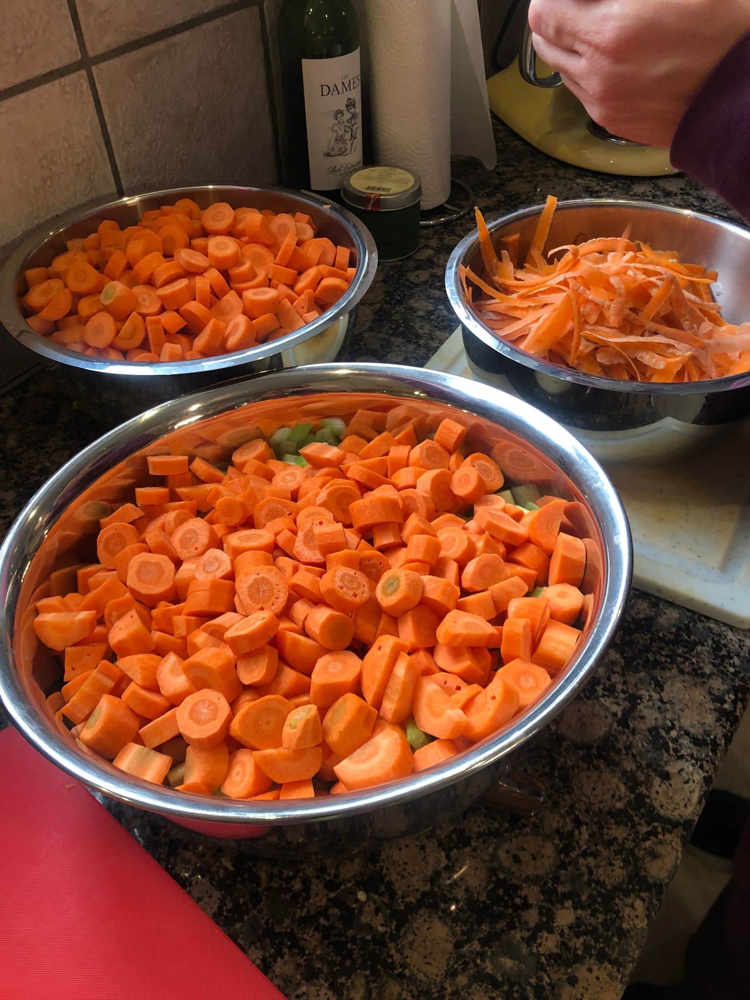 Marianne backte 8 Kuchen und kochte, wie auch Carmen jeweils fast 50 Gläser Marmelade aus den uns gespendeten Früchten.