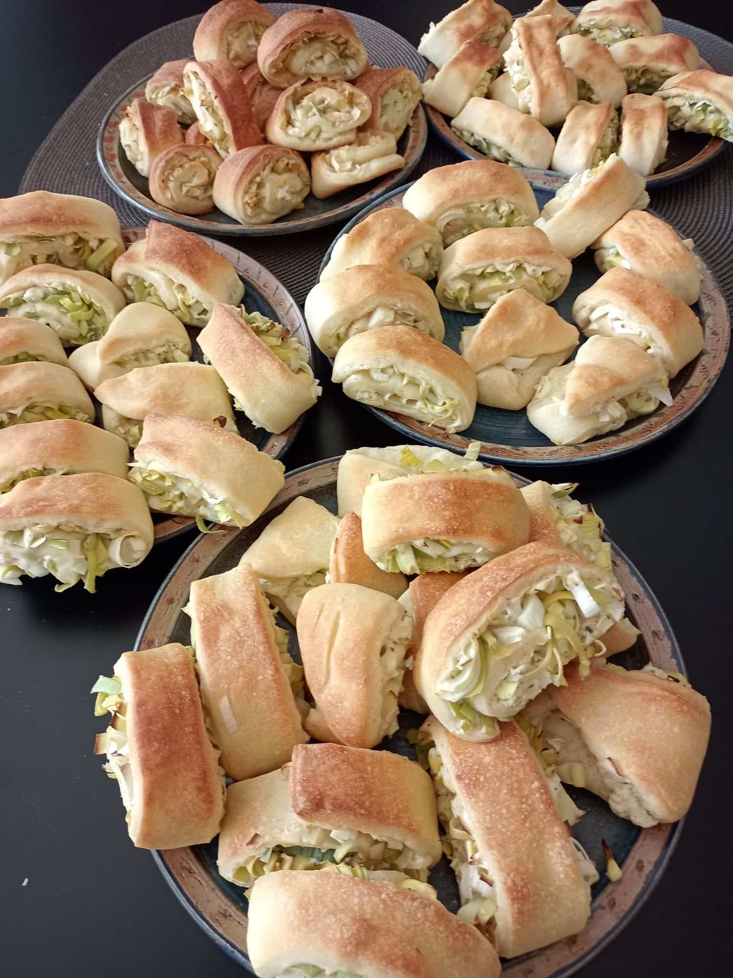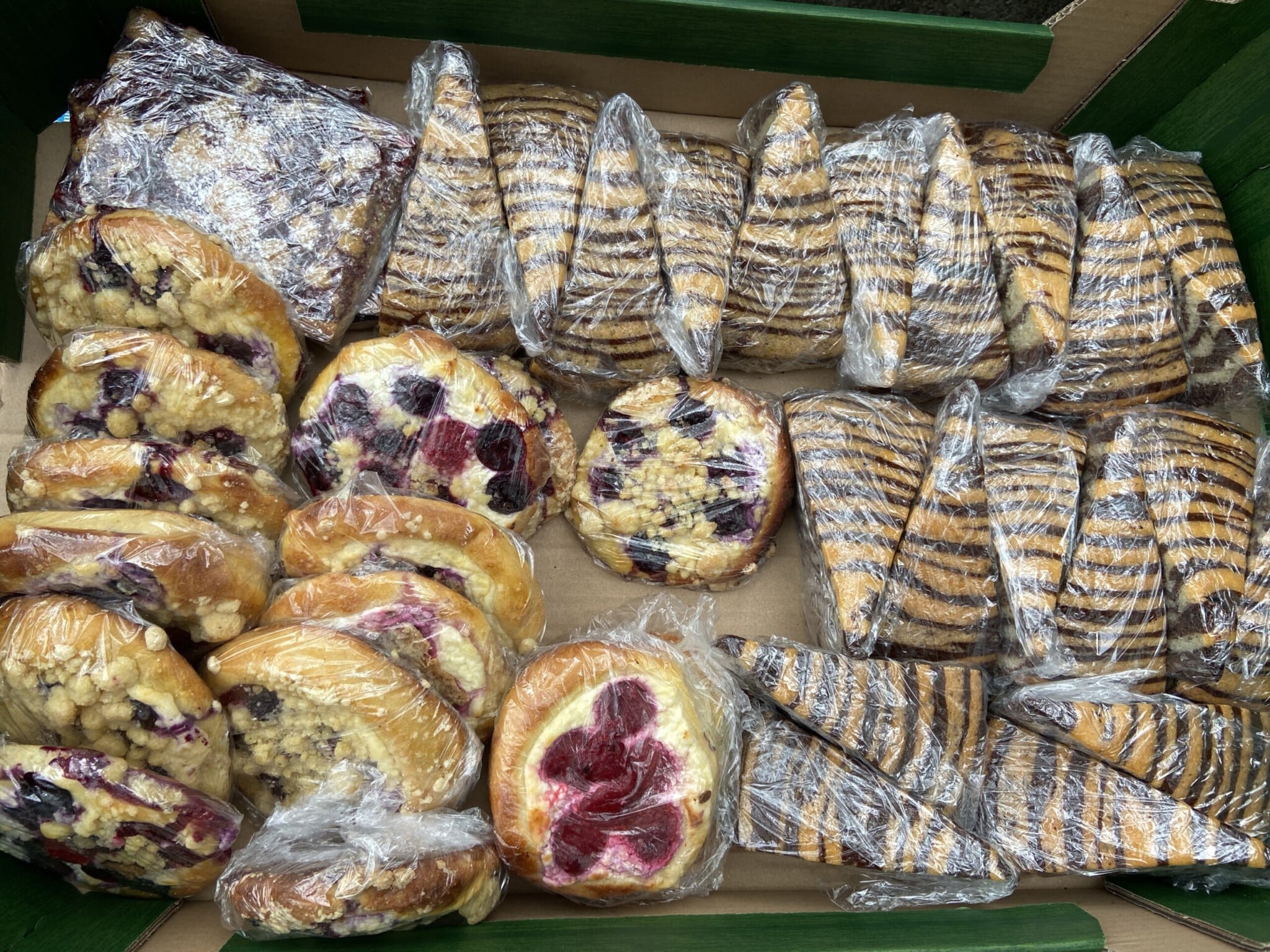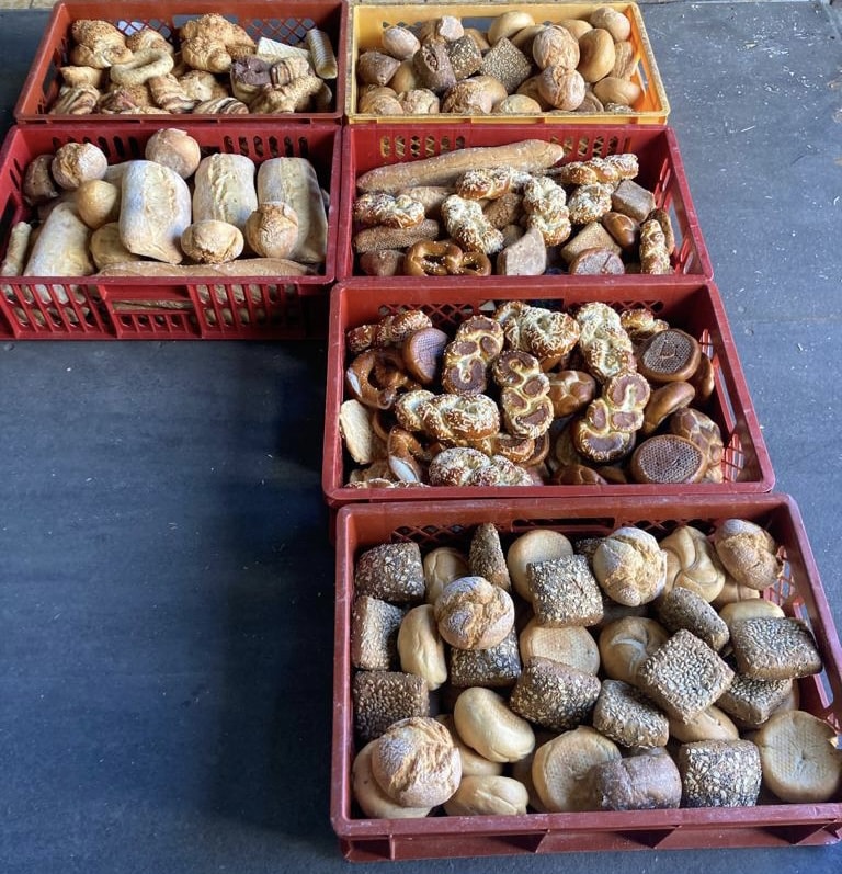 Zu Essen gab es gestern 50 Liter Nudel-Gemüse-Pfanne mit Würstl, 30 Liter Gemüse-Eintopf mit Fleisch sowie 50 belegte Brote und eine große Menge Lauch-Blätterteig-Schnecken von Johanna. Gaby Sch. kochte 30 Liter Würstlgulasch, backte Apfel- und Rhabarberkuchen mit Rahm und steuerte 30 Käsebrote bei. Von Renate kamen 70 weitere belegte Brote hinzu. Gaby G. kochte 20 Liter Gulaschsuppe und 10 Kilo Nudeln. Von Maria wurden 7 Kilo Hackbraten mit Soße und 20 Liter Kartoffelpüree zubereitet. Anne kochte Eintopf, kistenweise Eier hart und bereitete viele Portionen Nachspeise zu, welche wir gut gekühlt verteilen konnten. Auch von Silke durften wir vier Bleche Kuchen entgegen nehmen.