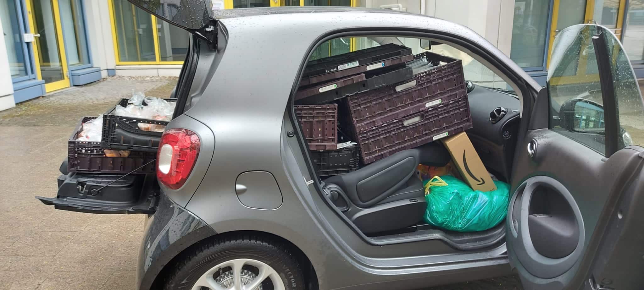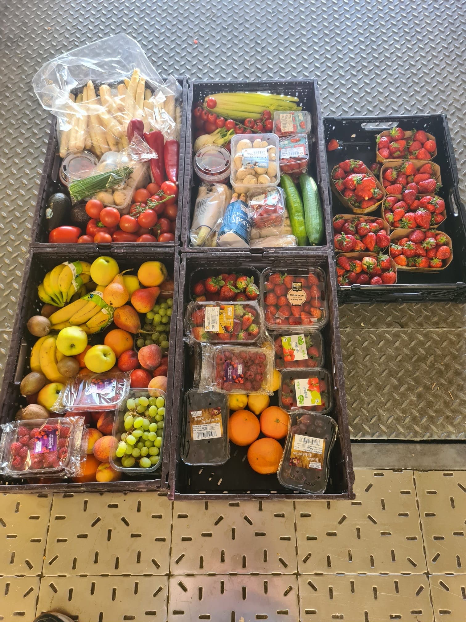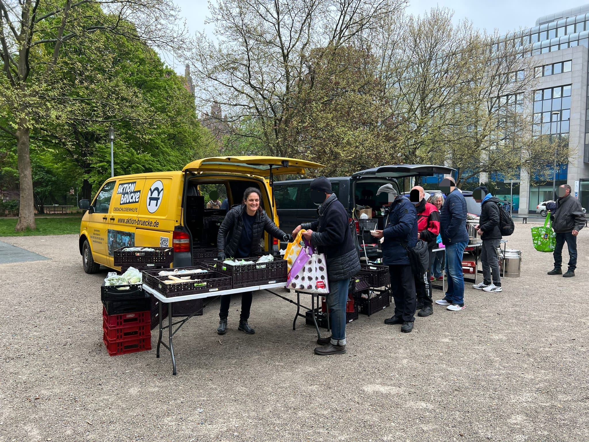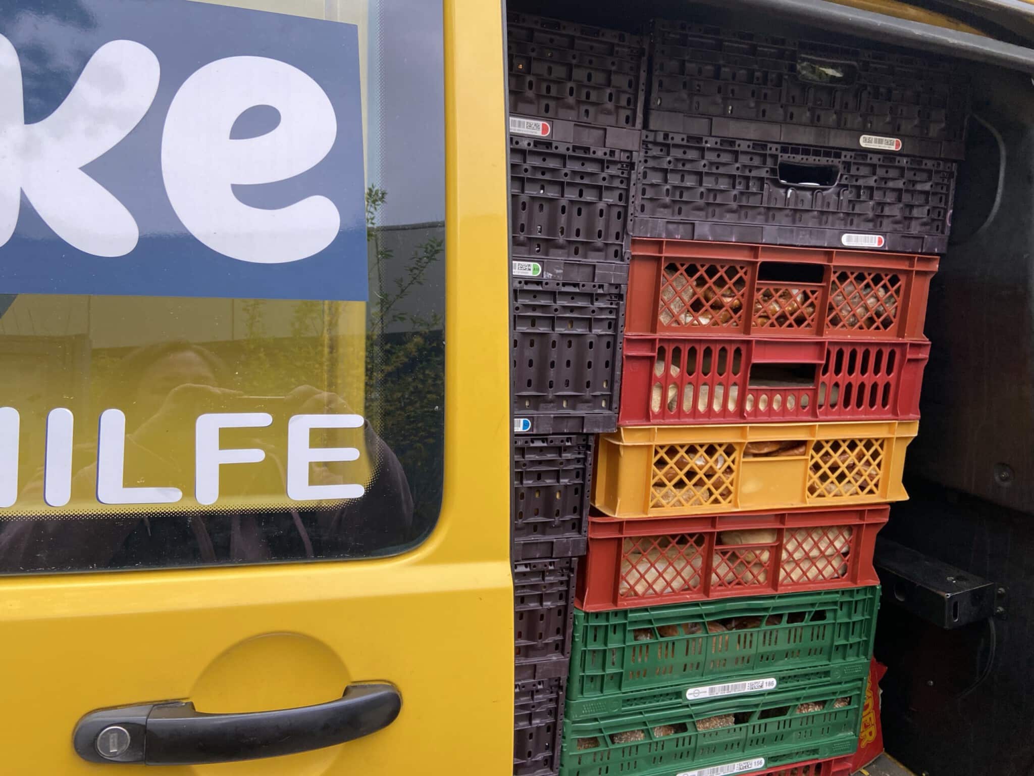 Unsere beiden Busse waren, zusätzlich zu den Fahrzeugen mit Kleidung, bis auf den letzen Zentimeter vollgestapelt mit Lebensmittelkisten für die Verteilung. Gerade auch viele Rentner:innen waren dankbar, aus den Vollen schöpfen zu können und sich frisches Gemüse und Obst sowie haltbare Lebensmittel, für die nächsten Tage, mit nach Hause nehmen zu können.