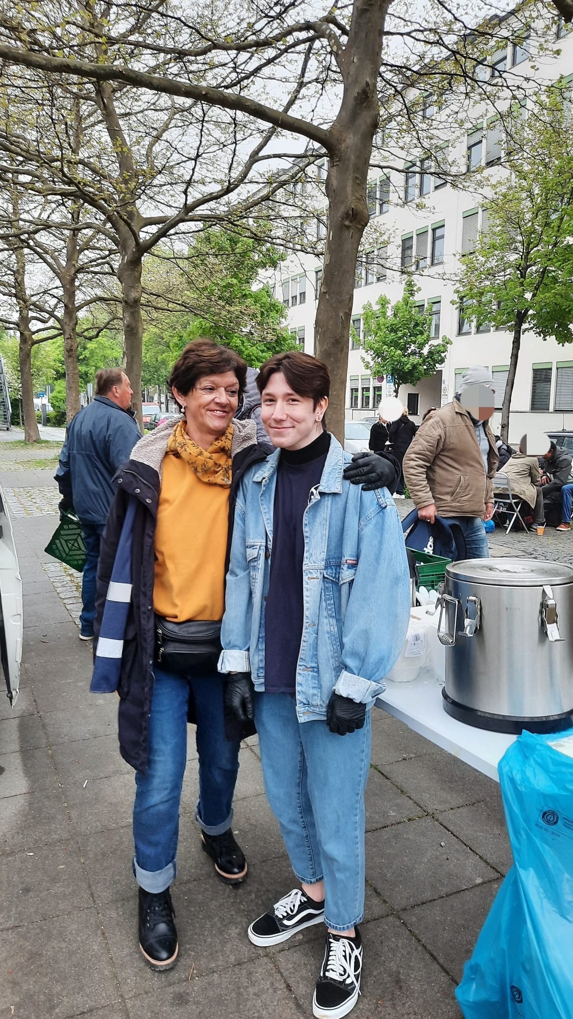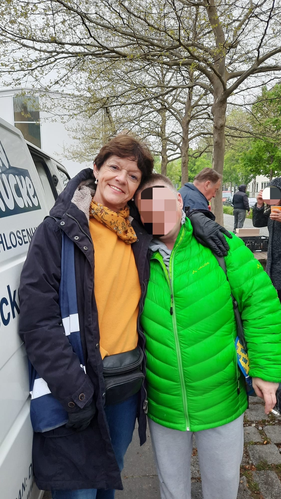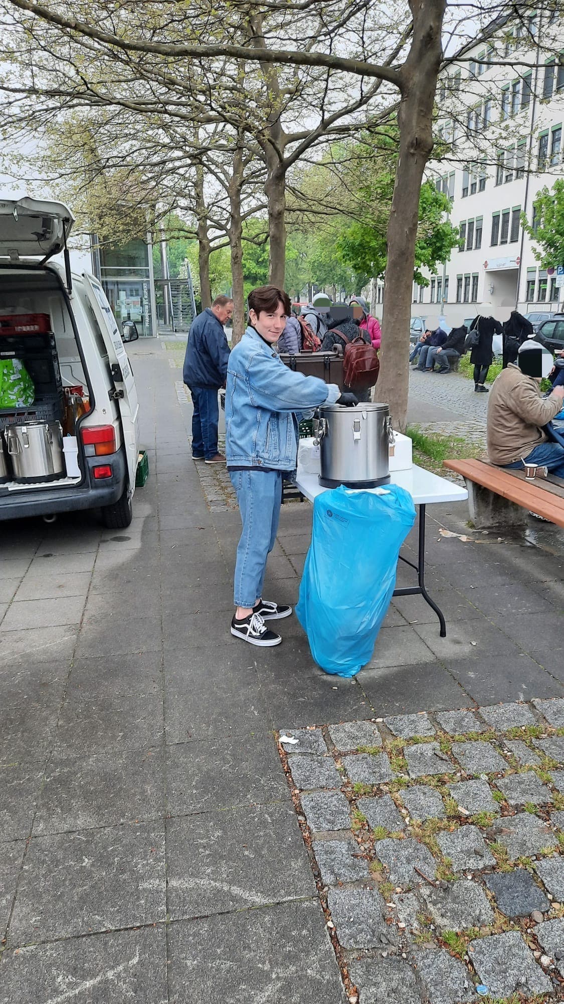 Obwohl wir noch am Samstagvormittag vor einem kleinen Besetzungsengpass für den Sonntag an der Freiheit standen, waren wir dank der Einsatzbereitschaft unseres grandiosen Teams gestern dann doch richtig gut aufgestellt. Renate, Maria, Dieter und Dieters Bekannte Liesl, die gerne mal bei uns reinschnuppern wollte, versorgten über 300 Gäste mit frischer Kleidung und Hygieneartikeln. Nachdem Liesl gefühlte 120 Jahre als Bedienung gearbeitet hat, kann sie gut auf Menschen zugehen, ist offen, kommunikativ und lässt sich nicht aus der Ruhe bringen. Auch Johanna, die sonst in unserem Verpflegungsteam kocht, erklärte sich mit ihrem Mann Stefan kurzerhand bereit am Stand auszuhelfen. Johanna hatte einen mega Tag hinter sich, denn gleich früh morgens kochte sie 80 Liter warmes Essen für unsere Touren und als die Töpfe von unseren Fahrern abgeholt und verladen waren, machte sie sich mit Stefan auf den Weg zur Münchner Freiheit. Gemeinsam rockten sie, mit super Stimmung die Verteilung.