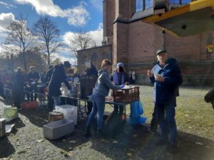 In einem Jahr verteilen wir insgesamt 2.496 ganze Kuchen, 3.976 Liter Kaffee, 1.972 Liter Tee/Eistee und 2440 Liter Wasser sowie 15.000 Liter warme Mahlzeiten. Nicht mitgerechnet sind Nachspeisen und Salate.