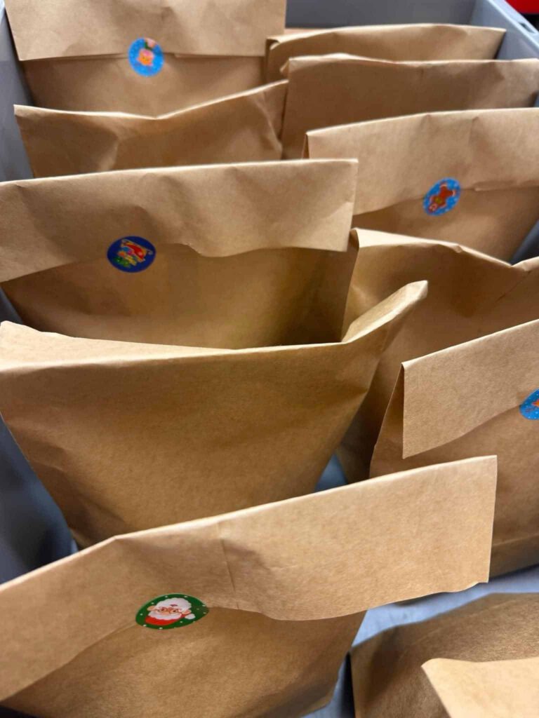 Auf die klassischen Nüsse haben wir dieses Jahr verzichtet, weil uns die Erfahrung der letzen Jahre gezeigt hat, dass viele unserer Schützlinge auf Grund ihrer oft schlechten Zahngesundheit, die Nüsse nicht mehr beißen können. Dafür gibt’s am Nikolaustag dann frische Mandarinen und Äpfel mit ins Sackerl.