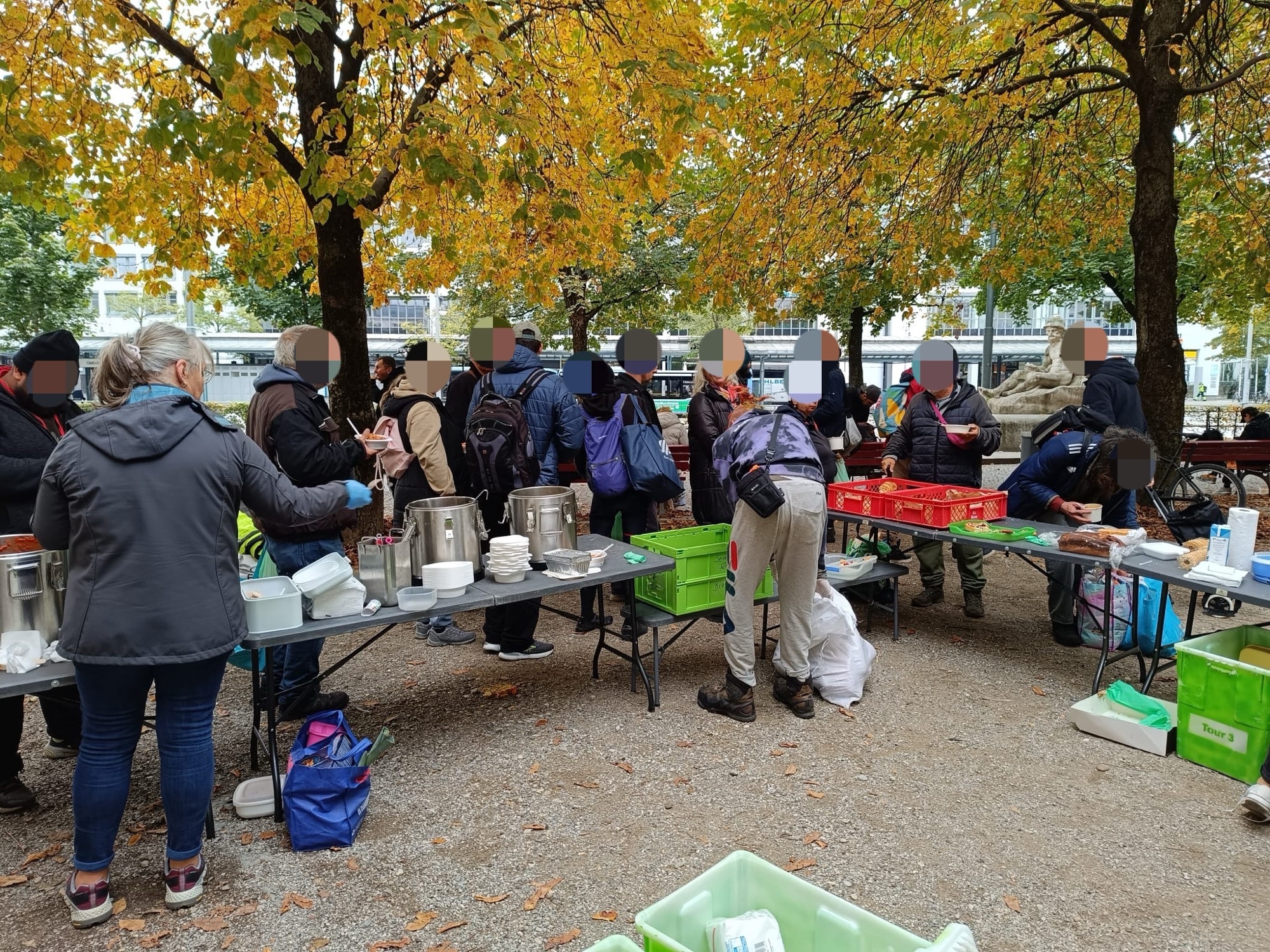 Denn unsere Arbeit beginnt nicht erst am Sonntag und sie endet auch nicht danach. Wir stehen sieben Tage die Woche im Einsatz. Mit viel ehrenamtlichem Engagement, Leidenschaft und Herzblut. Damit am Wochenende 1.200 bis 1.500 Menschen versorgt werden können, wird unter der Woche gekocht und gebacken, eingekauft, gewaschen, geputzt, gespült, sortiert, organisiert und geplant. Dazu gehören Vereinsverwaltung, Instandhaltung, Aufräumen, Spendenannahme, aber auch lange Gespräche mit Menschen, die bei uns Halt finden.