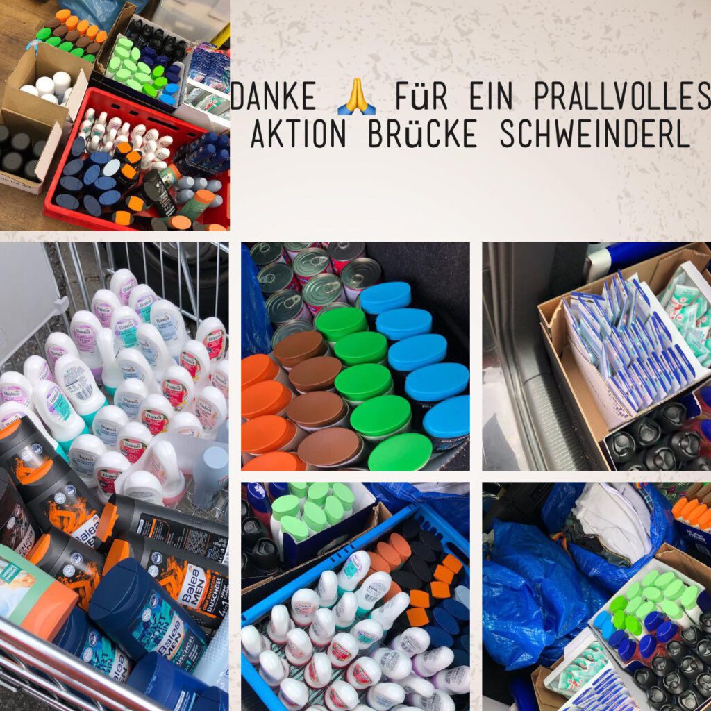 Vielen herzlichen Dank auch an alle die so fleißig unser Brücke Schweinderl in Uschis Studio gefüttert haben. Satte 400€ kamen zusammen und Uschi war mit dem Geld gleich mal für uns shoppen und kaufte eine große Menge Hygieneartikel und Tierfutter für unsere Touren.