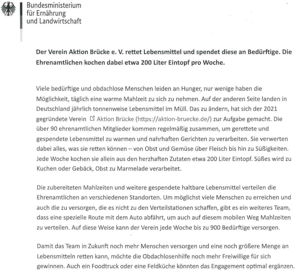 Am 28.04.2022 bekamen wir die freudige Nachricht, dass wir zu den 17 nominierten Projekten für den Bundespreis 2022, gehören.