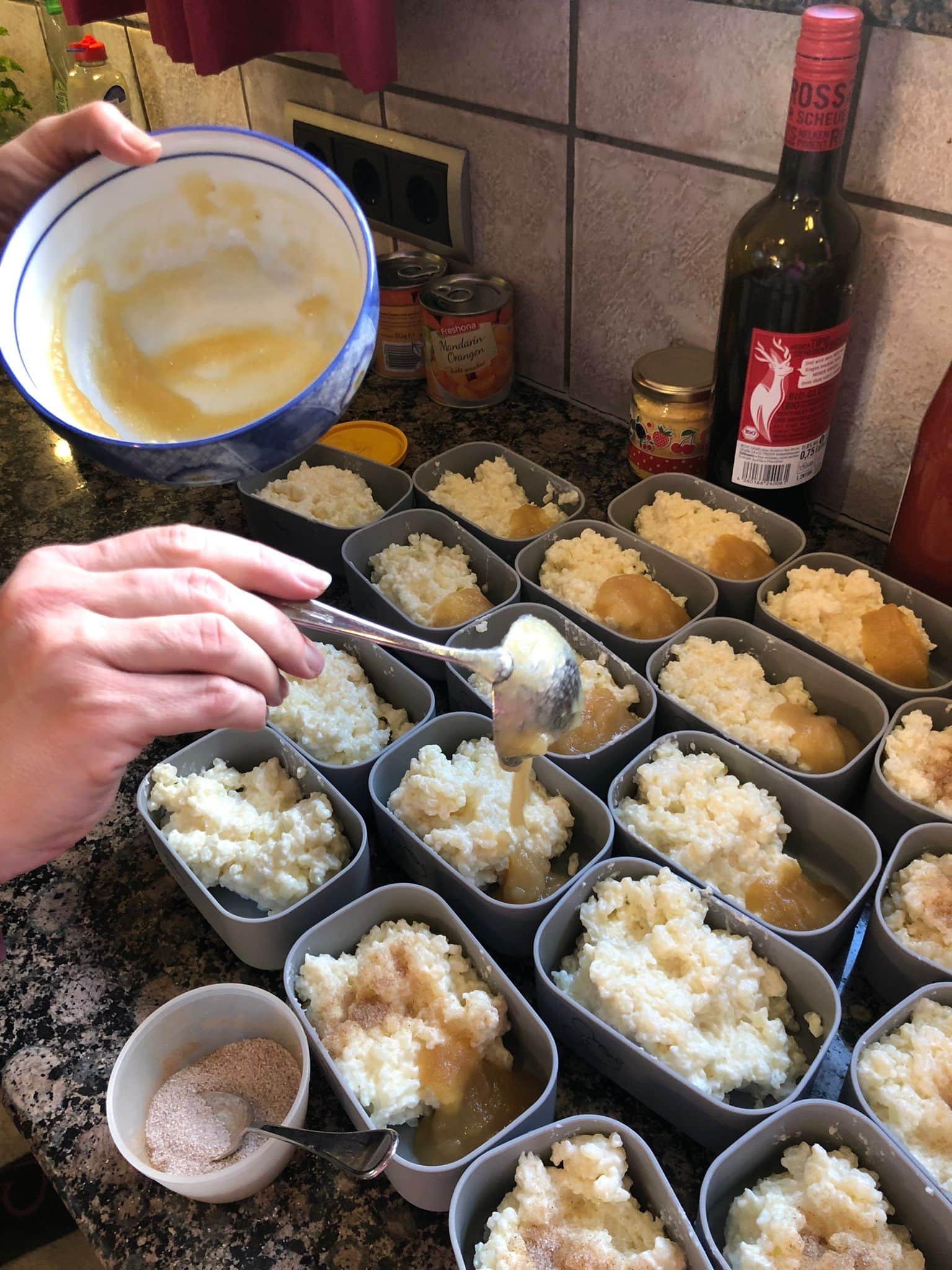 Von Johanna bekamen wir einen Nudel-Gemüse-Eintopf. Gaby S. bereitete eine Hackfleisch-Suppe und als Nachspeise Milchreis zu.
