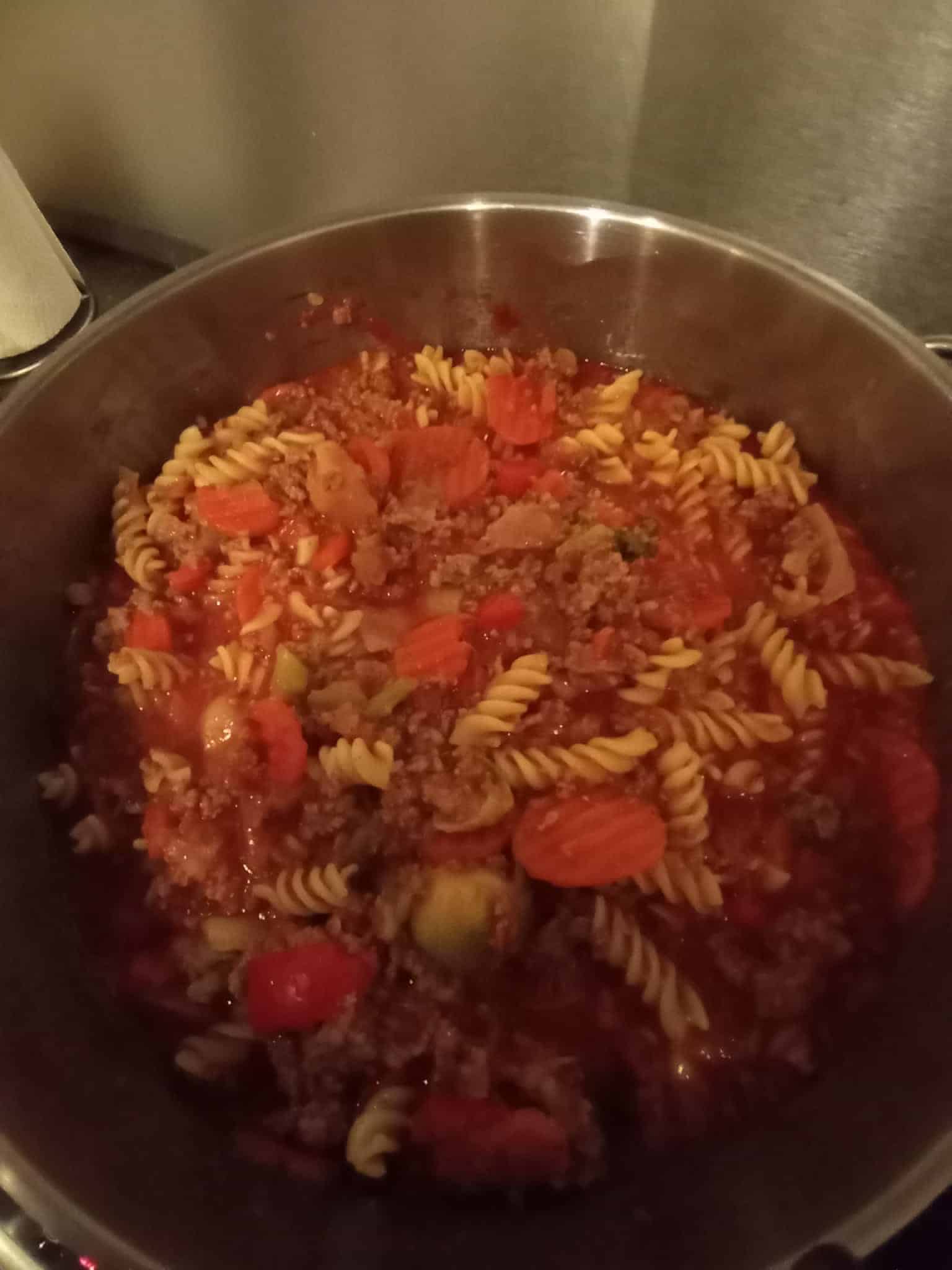 Peter brachte uns eine große Menge Fertiggerichte und Christel einen Nudeleintopf mit Rindfleisch und Möhren, sowie einen saftigen Nusszopf. Laura backte Pizzaschnecken und