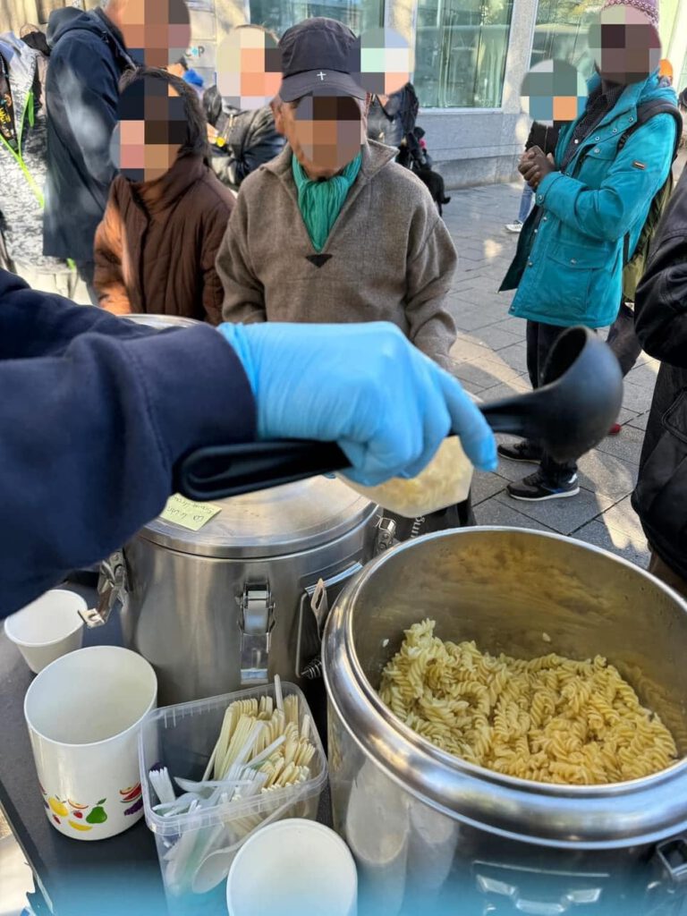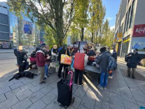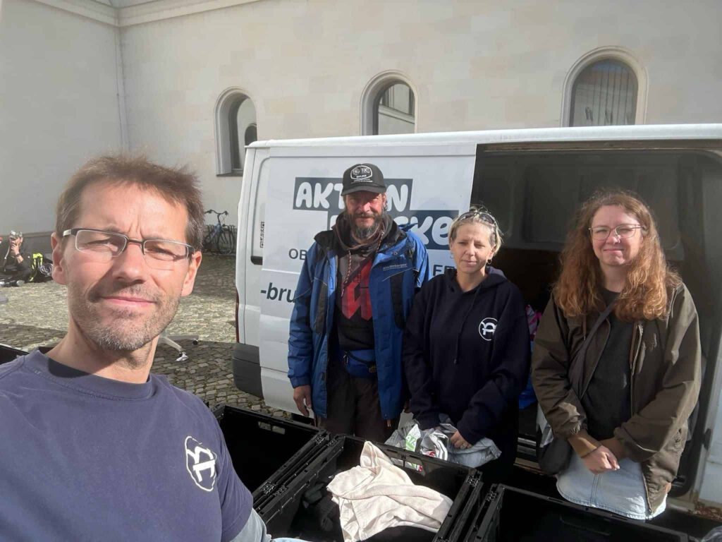 Gestern trafen wir an all unseren Stationen auf etliche neue Gesichter. Viele Menschen sind gerade frisch auf der Straße gelandet. So auch eine Frau mittleren Alters, die durch Zufall auf unsere Ausgabe traf. Bekleidet war sie in einem dünnen Oberteil und einer Hose die nicht ganz bis zum Knöchel reichte. Jacke, Socken und Schuhe fehlten gänzlich. Auch sie war ganz frisch erst obdachlos geworden und ihre Verzweiflung sowie ihre Anblick, trieb dann auch einer unserer Kolleginnen die Tränen in die Augen.
