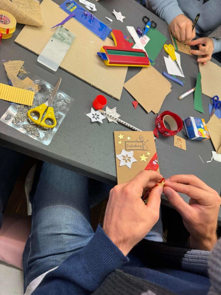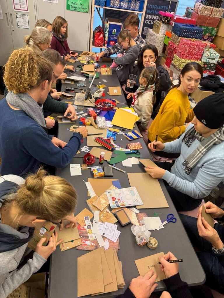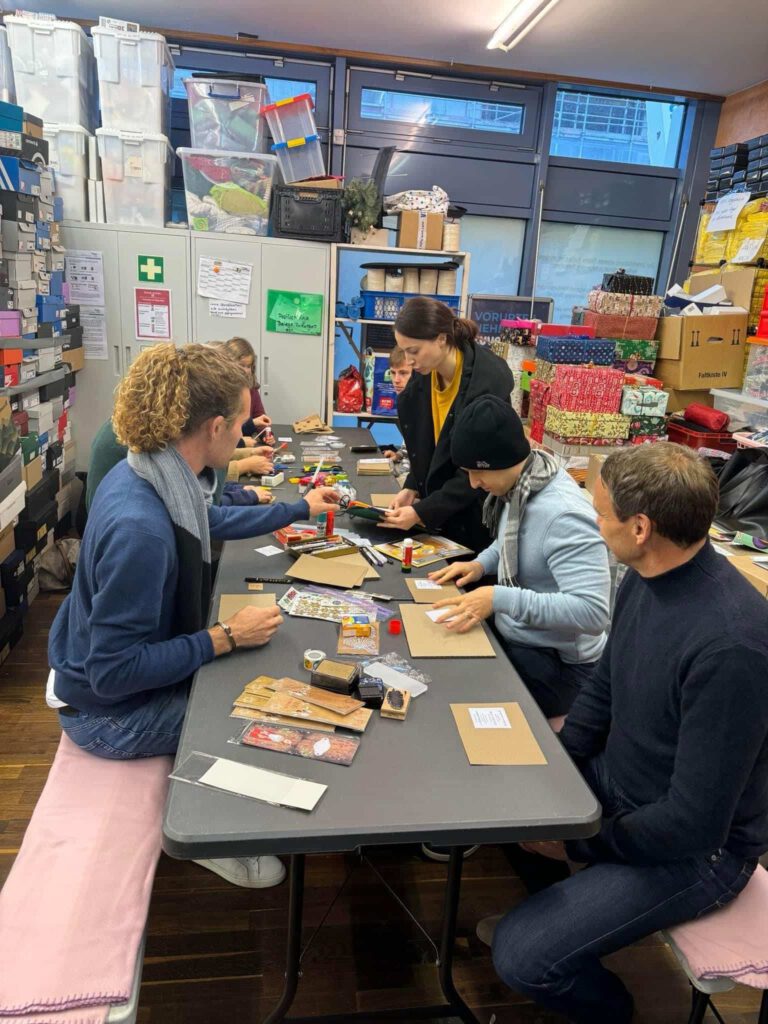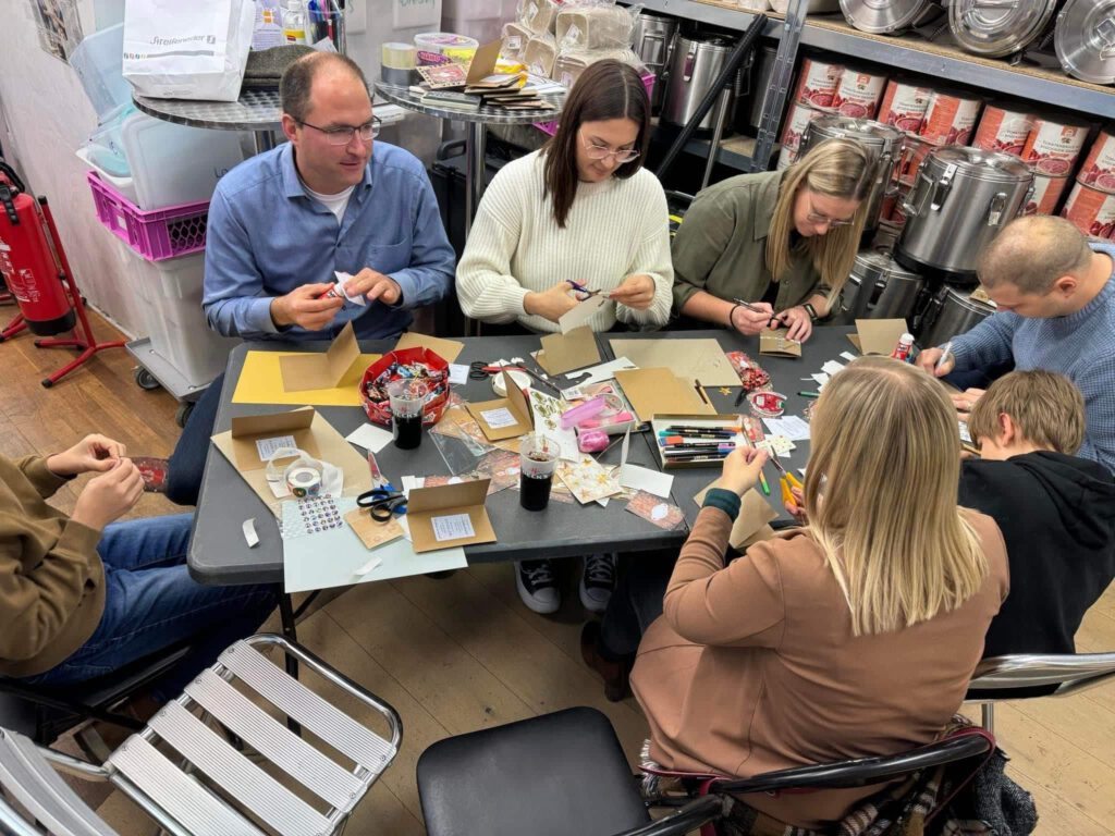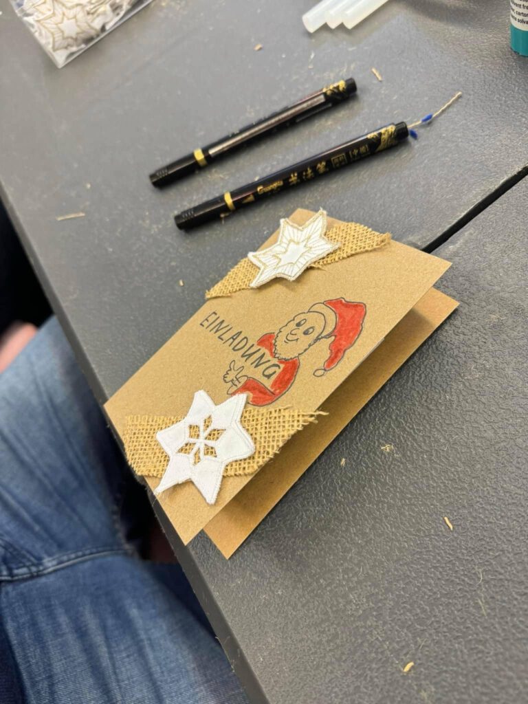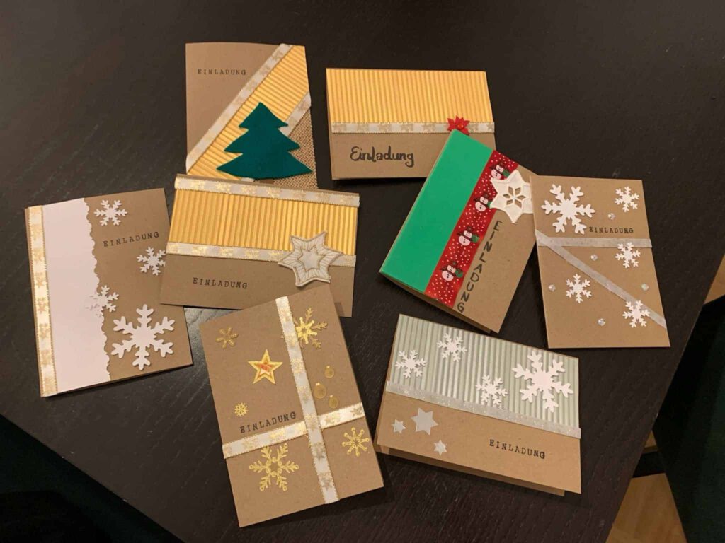 Gemeinsam bastelten wir, unter der Anleitung unserer kreativen Tourenfahrein Anja und mit Unterstützung von unseren beiden Vorständen Vroni und Anja, sage und schreibe 200 individuell gestaltete und einzigartige Einladungskarten für unsere diesjährige Weihnachtsfeier für obdachlose und bedürftige Menschen.
