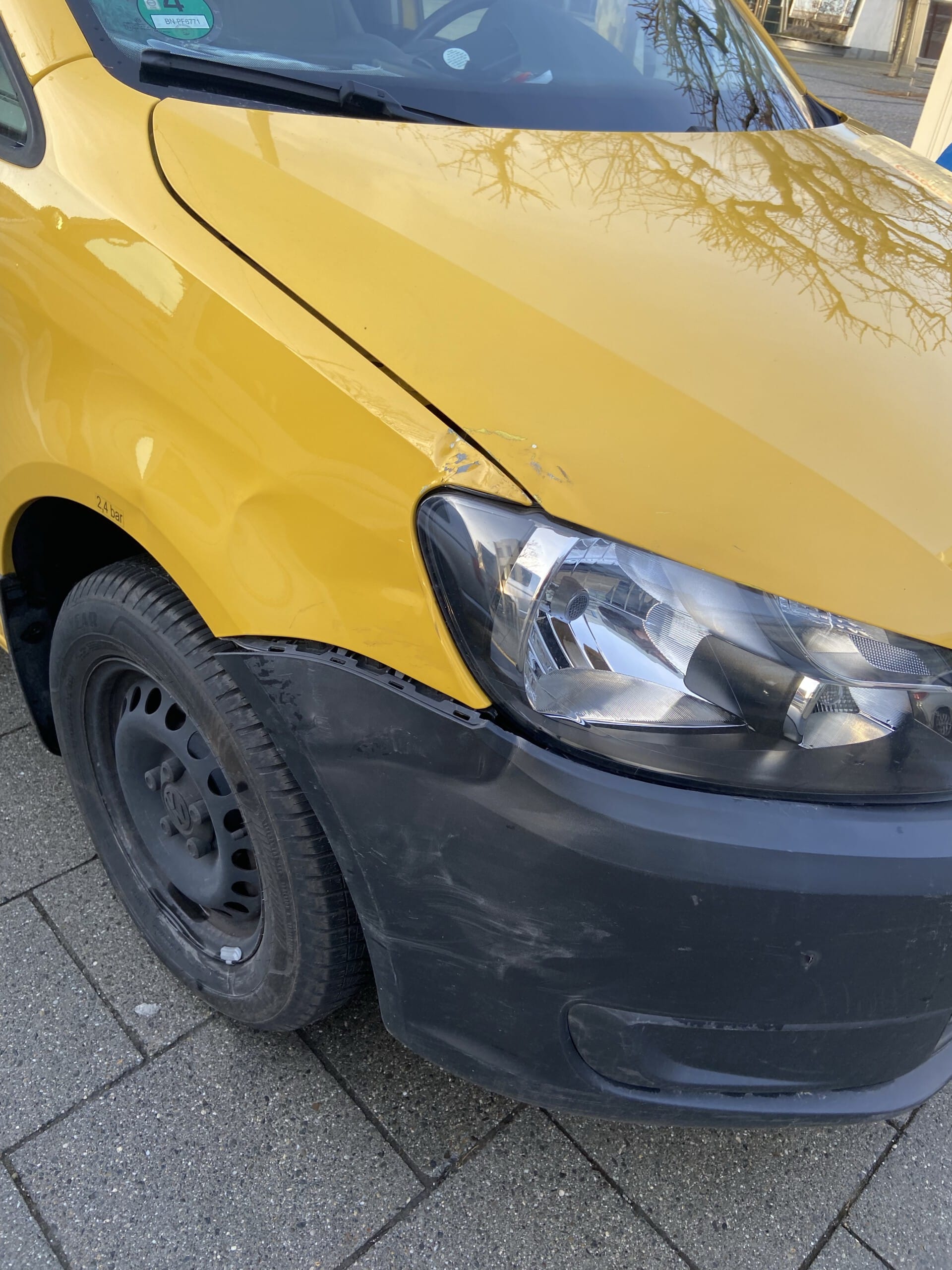 Heute mussten wir leider feststellen, dass unser Caddy, eins unserer Tourenautos, angefahren und Fahrerflucht begangen wurde.
