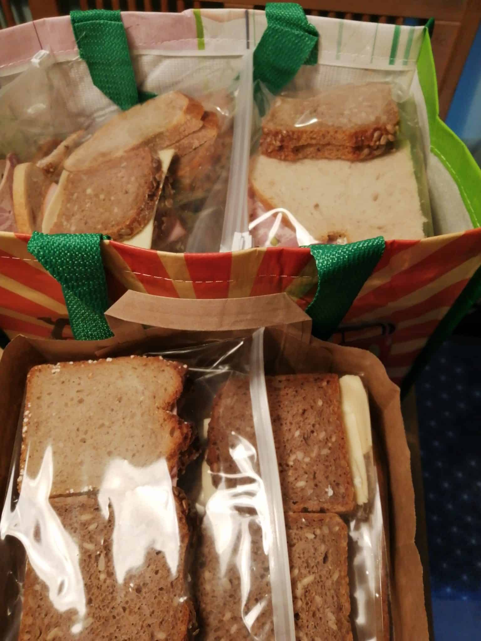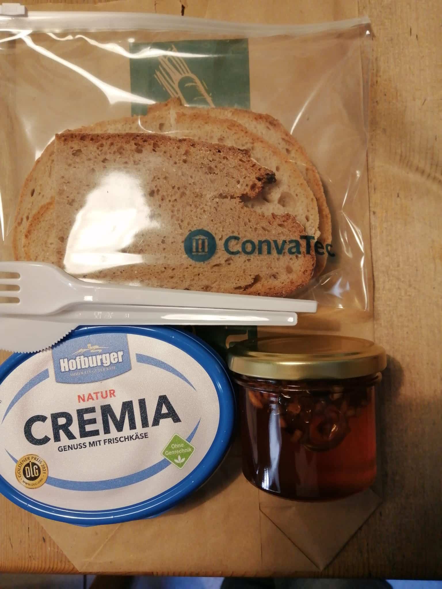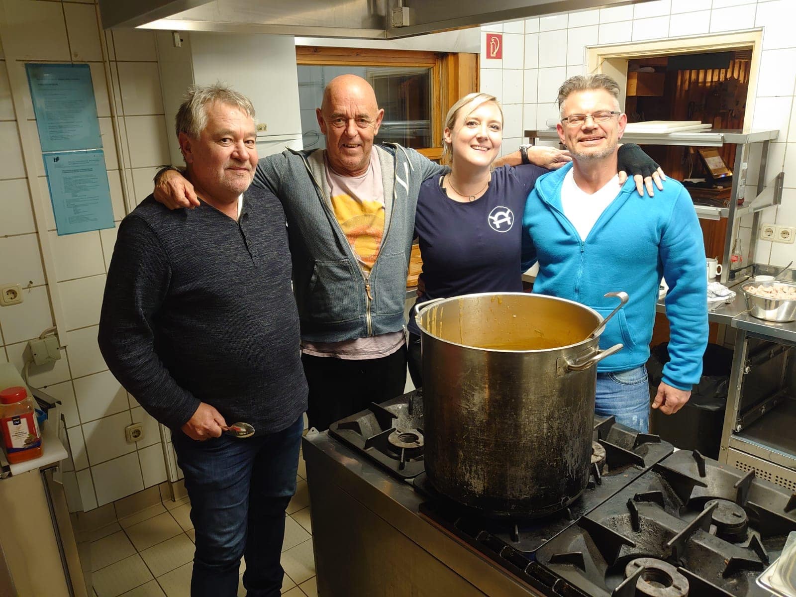 Renate brachte uns belegte Brote und Frühstückstüten mit Brot, Honig und Frischkäse. Gaby G. bereitete eine Erbsensuppe zu. Petra steuerte weitere belegte Brote bei. Cindy kochte eine kräftige Hühnersuppe.