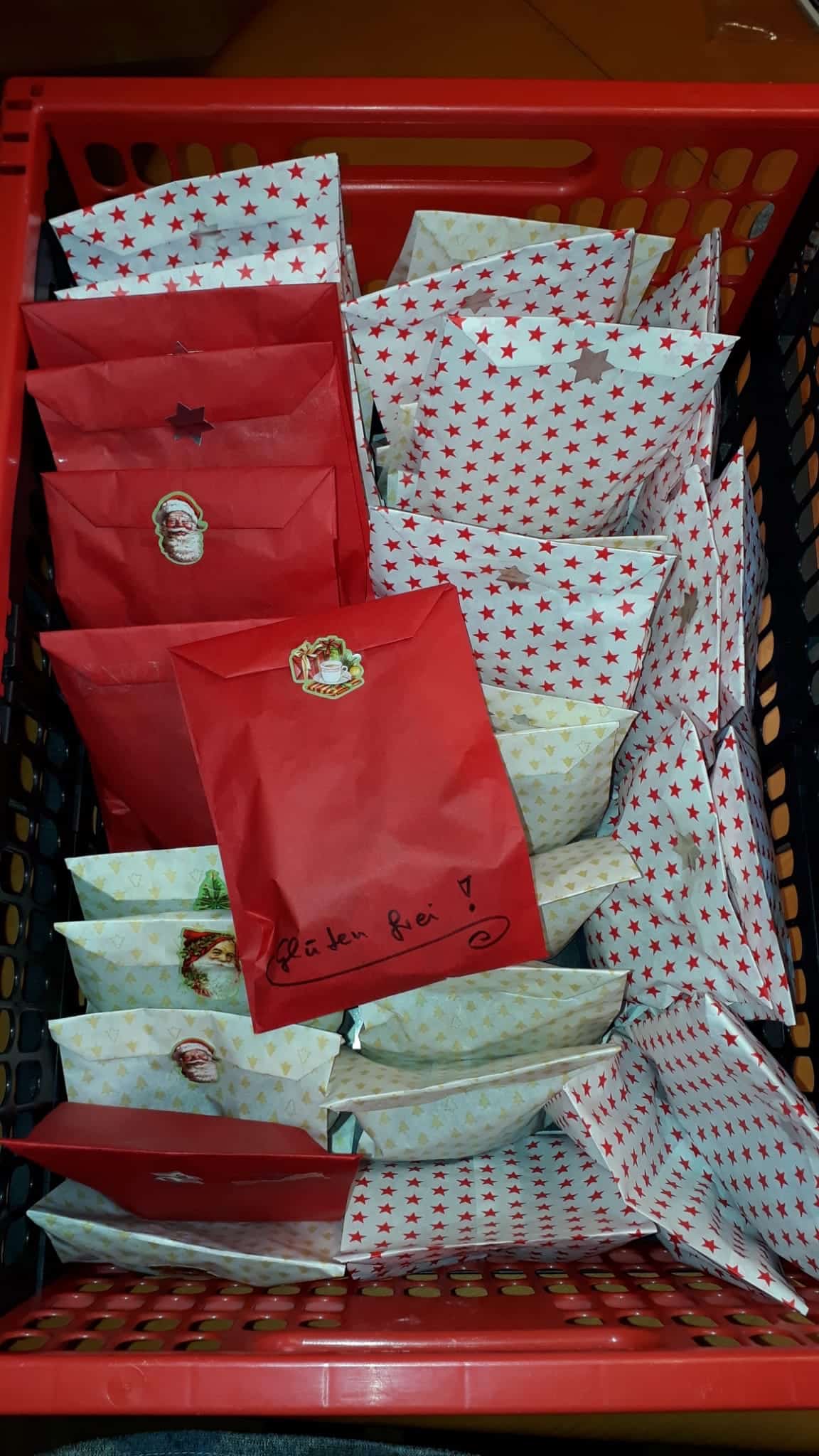Im Rahmen unserer heutigen kleinen Nikolausfeier gibt es von den gespendeten 800 Bratwürstel der Landmetzgerei Kuhn, viele große Töpfe, randvoll gefüllt mit Currywurst.