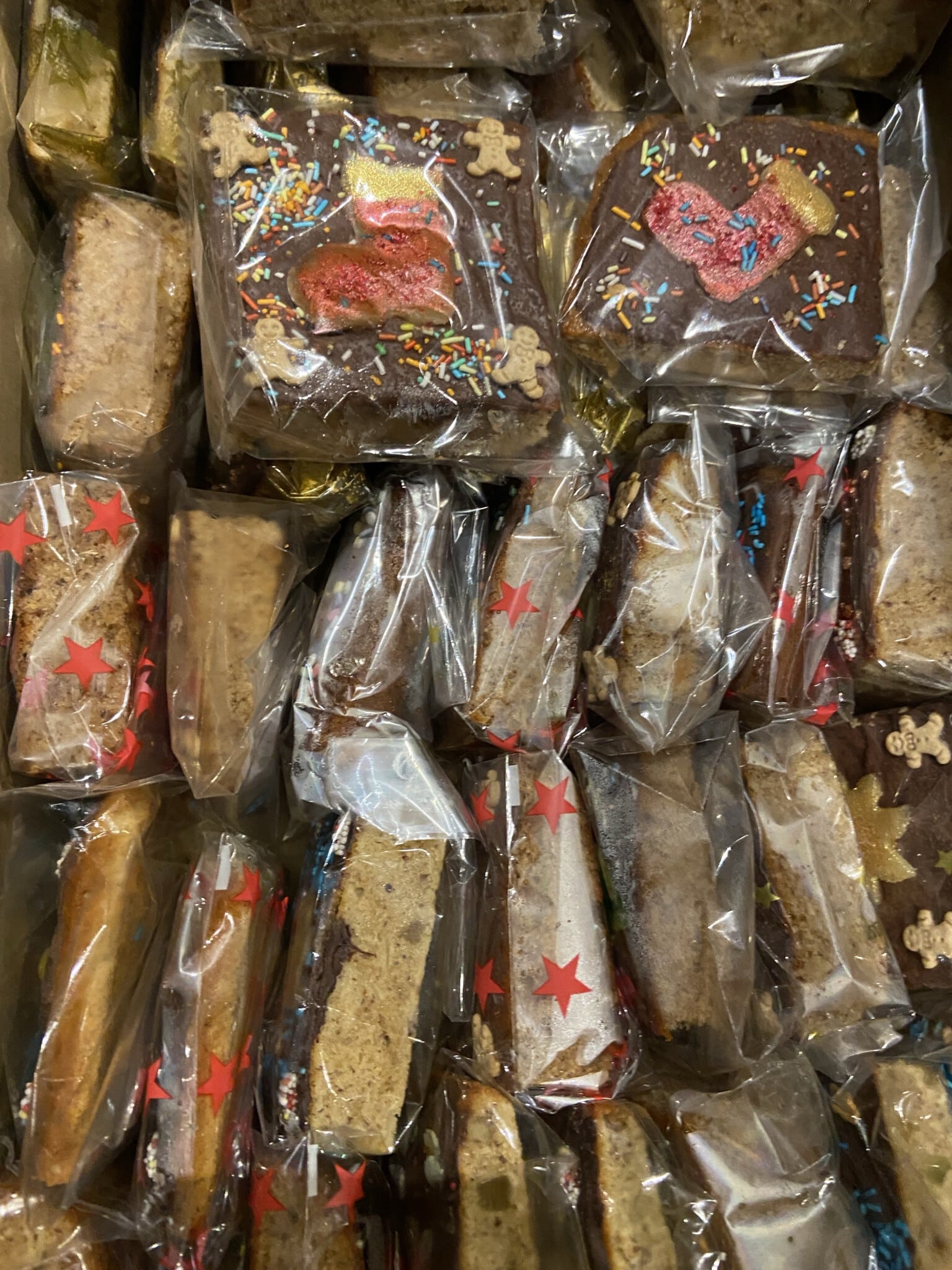 Wir dürfen 2 Bleche Russischen Zupfkuchen und Nusskuchen, sowie 6 weitete Kuchen von Andrea und Muffins von Steffy sowie selbstgemachte Lebkuchen von Carmen verteilen.