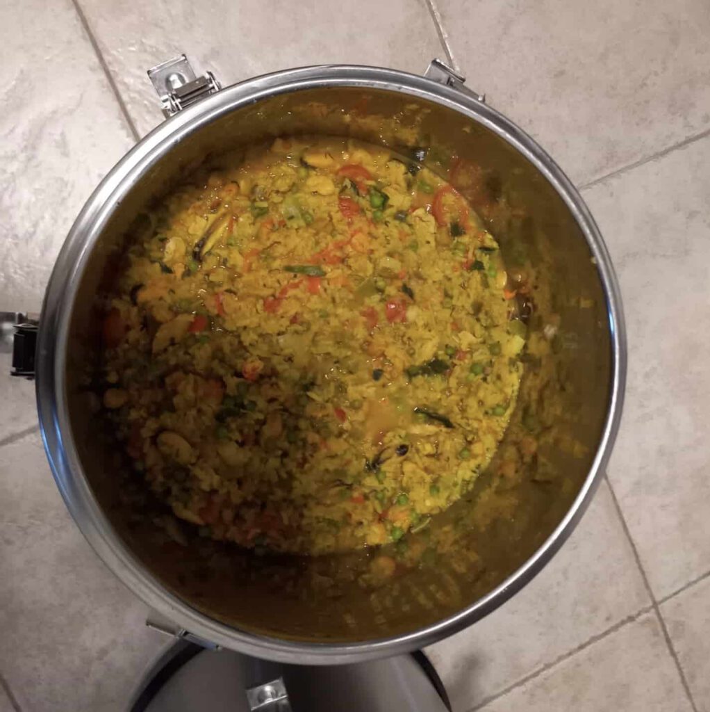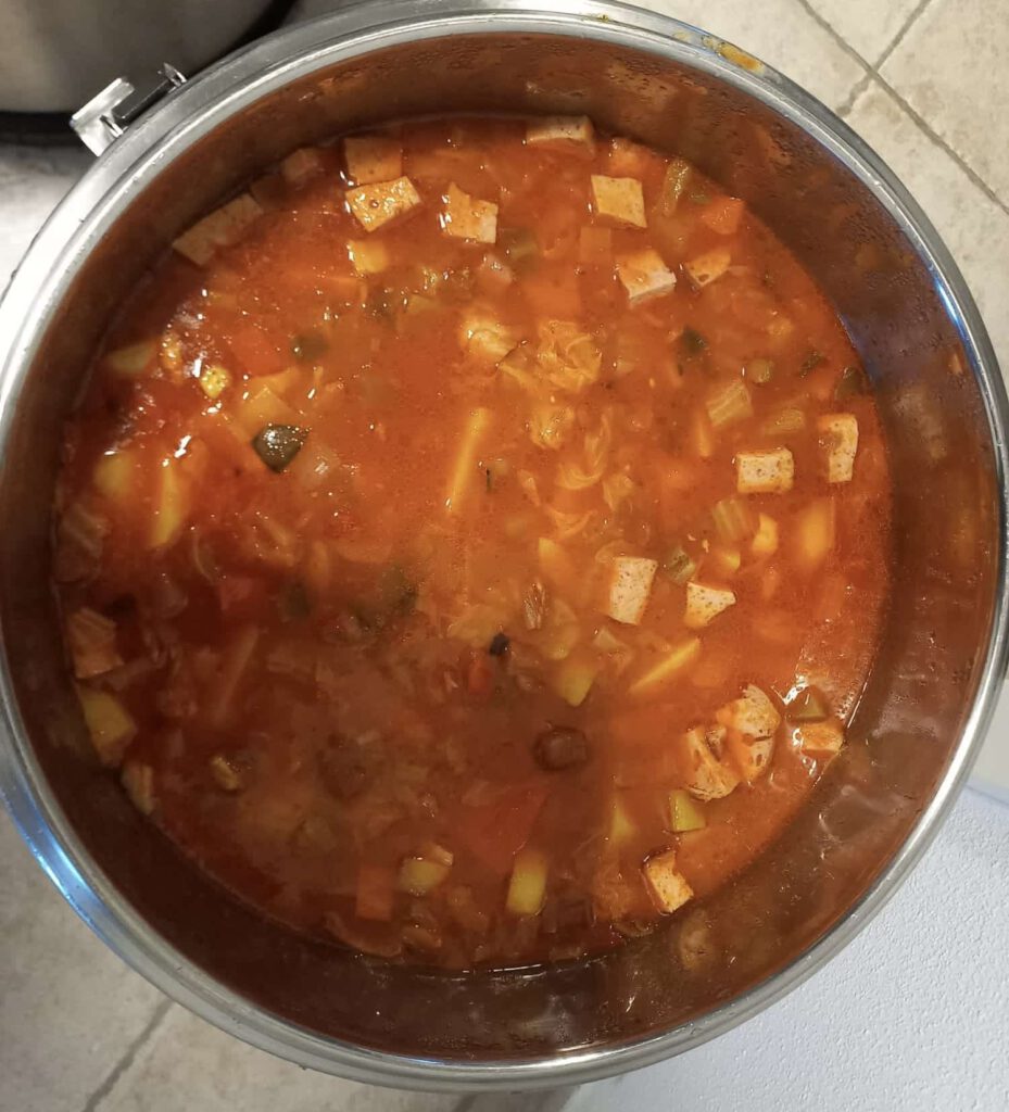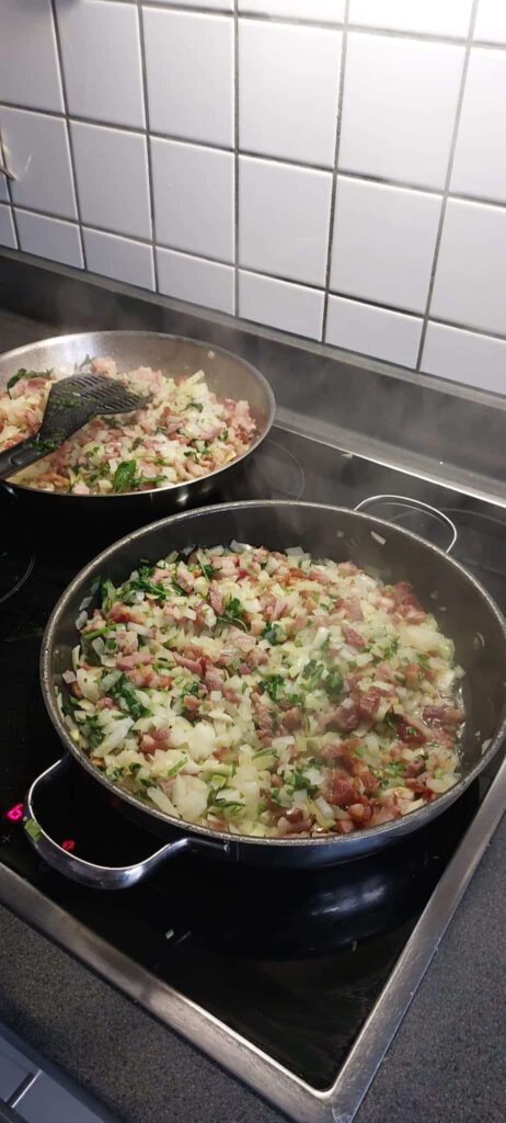Zu Essen gab es gestern einen Hackfleischeintopf mit Kraut, ein Leberkas-Ragout mit Nudeln, eine deftige Brühe mit Speckknödeln, ein Kalbsragout mit Champignons und angebräunten Semmelknödeln, ein Putengeschnetzeltes mit Reis und eine Paella mit Geflügel.