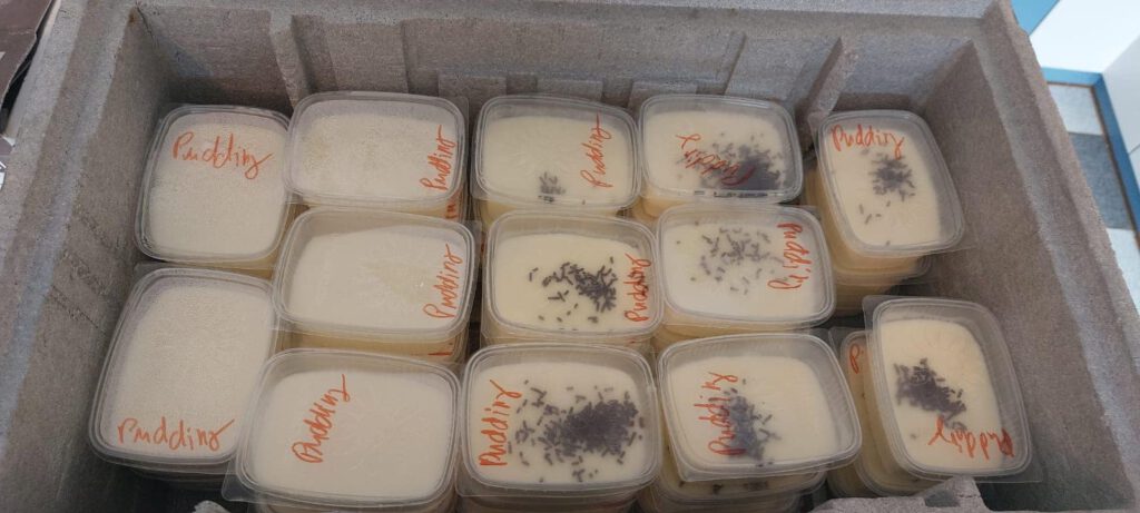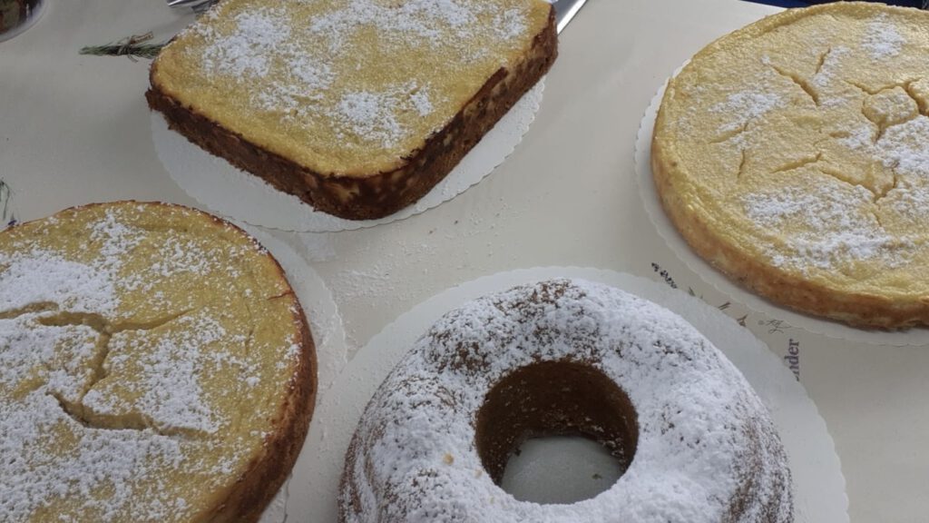 Als Nachspeisen reichten wir Vanillepudding, Zitronensahne und Joghurtcreme. Selbstverständlich hatten wir auch wieder ausreichend saftigen Kuchen zum Kaffee mit an Bord.