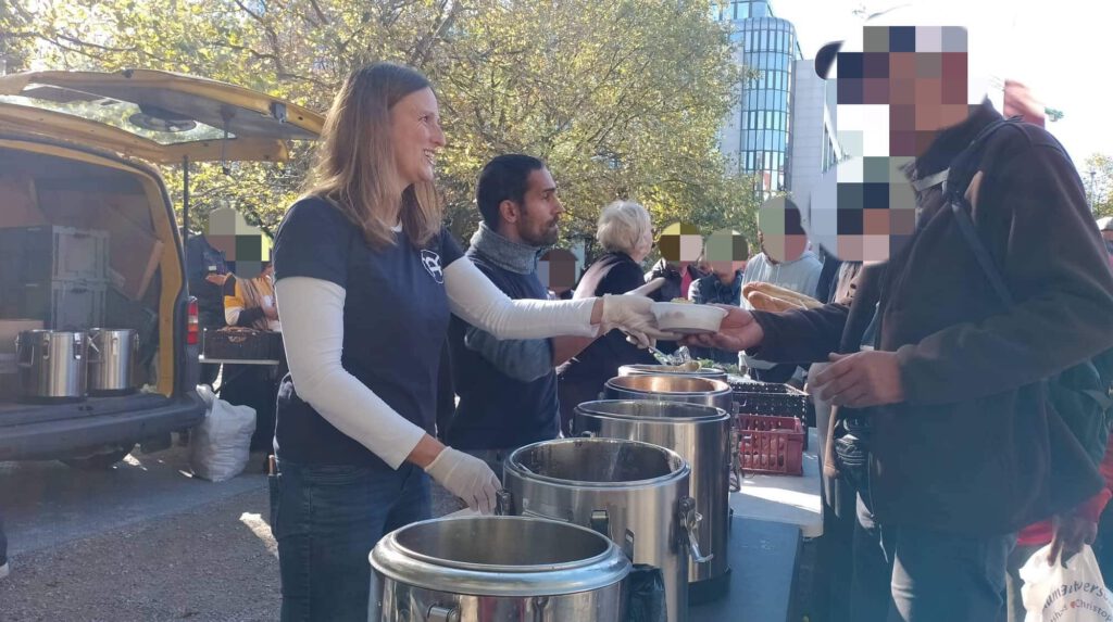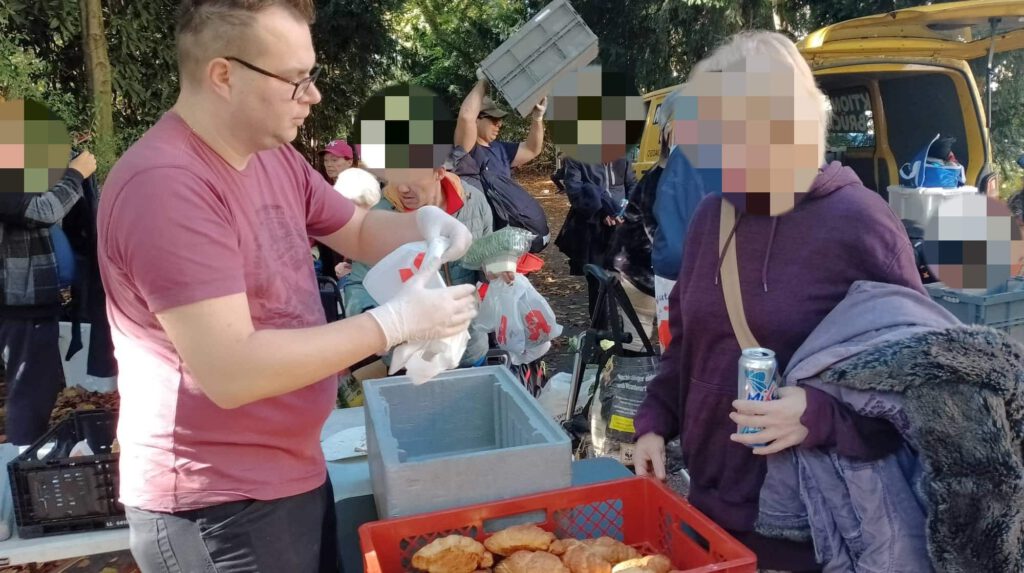 Die zweite Station der Tour 1 war gestern so sehr überlaufen, dass es für unser Team kaum möglich war den Überblick zu behalten. Schon vergangenen Sonntag stellten wir dort einen deutlichen Anstieg der Bedürftigen und Obdachlosen fest.
