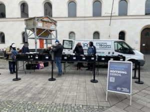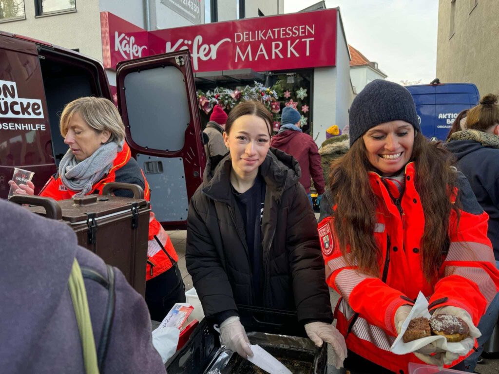 Als ganz besondere Freude begrüßten wir gestern Tanja und Nicole von der Rettungshundestaffel der Freiwillige Feuerwehr Hochbrück als fleißige Unterstützung auf unserer Tour. Die beiden Mädels kümmerten sich geduldig um die Ausgabe von Kaffee und Kuchen und schenkten jedem, der es nötig hatte ein offenes Ohr. Mit an Bord hatten die zwei eine ganze Ladung dicker, warmer Winterstiefel und gut gefütterte Jacken, die ihnen fast aus den Händen gerissen wurden.