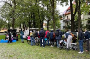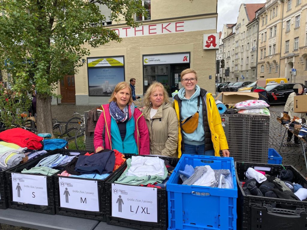 Aufgrund des Regens, mussten wir aber unseren Stand zur Kleiderverteilung an der Münchner Freiheit nach ca. einer Stunde vorzeitig wieder abbauen. Regennasse Kleidung, in diesen Mengen, können wir leider weder trocknen noch lagern. Vielen Dank an unser gestriges Team Dieter, Mario, Teresa, Ulrike, Marta und Petra, dass Ihr dennoch so zuversichtlich wart und es zumindest versucht habt.