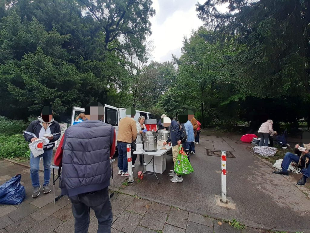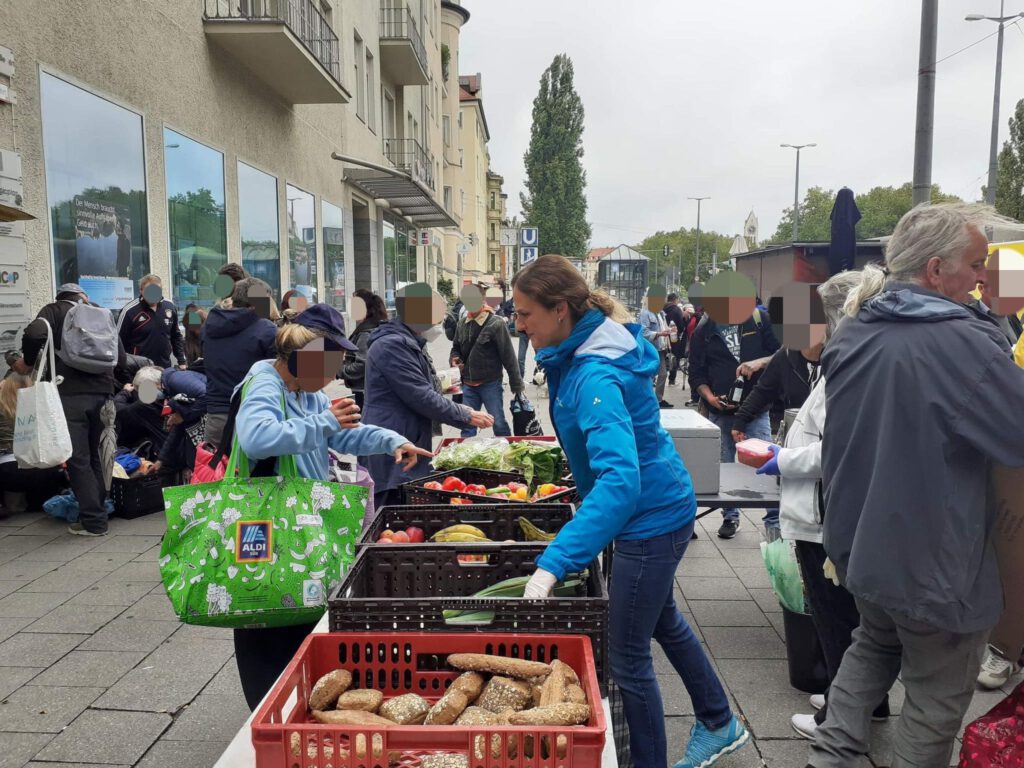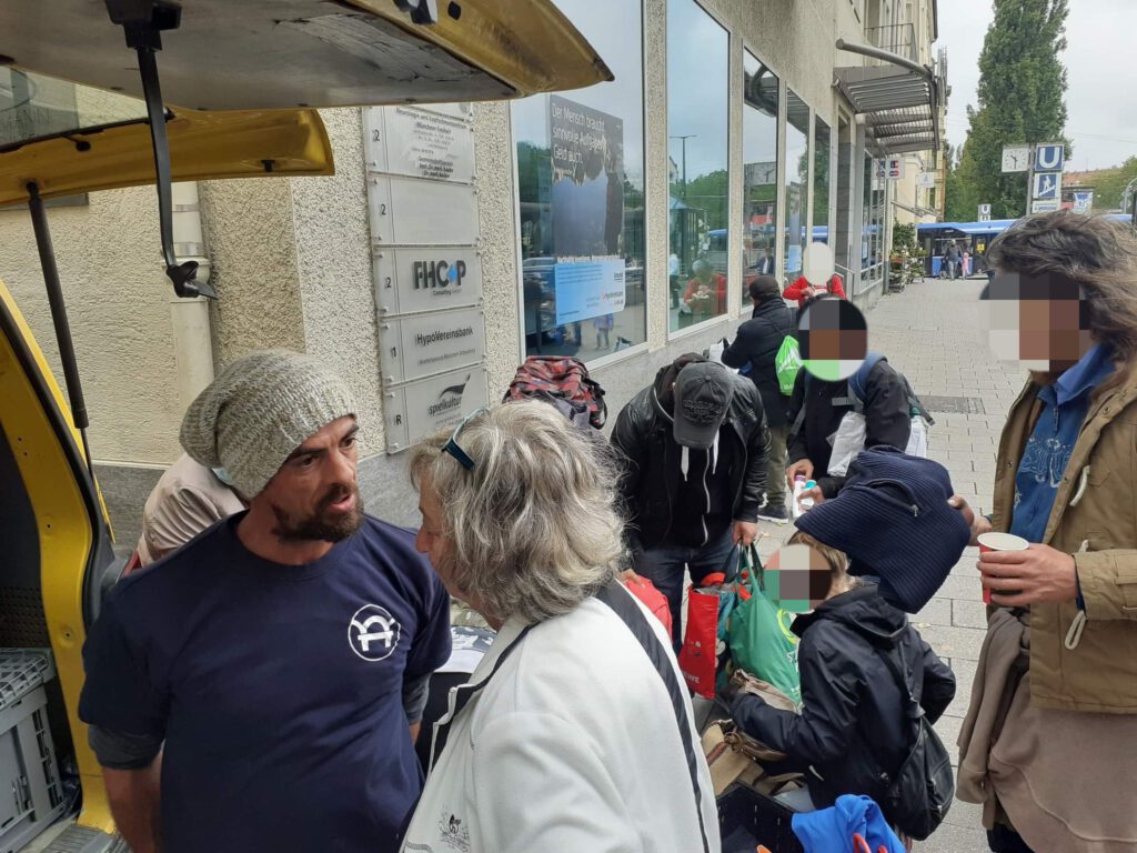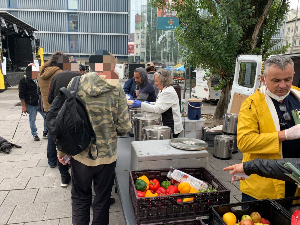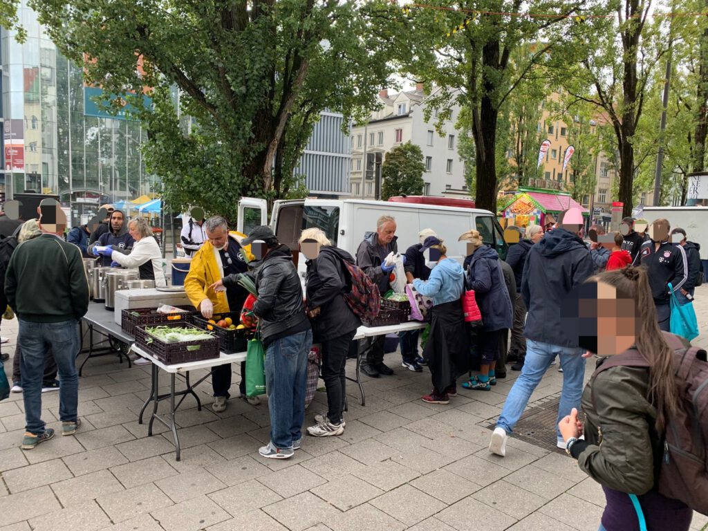 Zwischen den Passanten bauten wir am gewohnten Platz unseren Stand auf und verteilten wie immer unsere Hilfsgüter und warme Speisen an die oft vergessene Gesellschaft Münchens.
