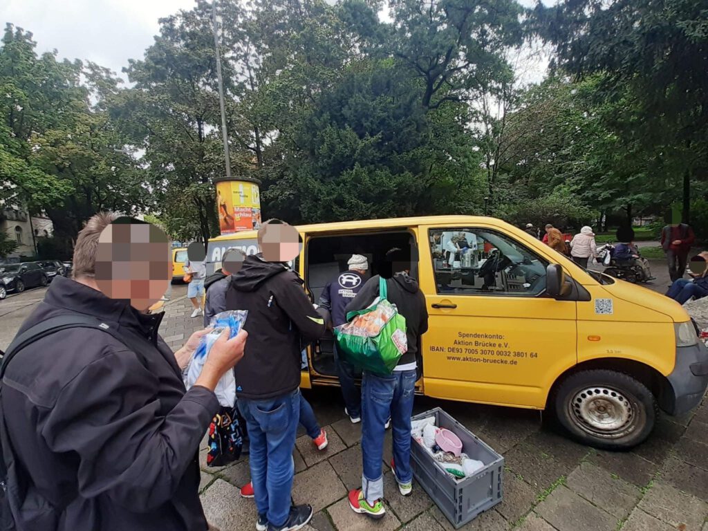 Bemerkenswert viele Rentner suchen mittlerweile unsere Plätze auf und sind dankbar von uns Lebensmittel für die bevorstehende Woche zu erhalten.