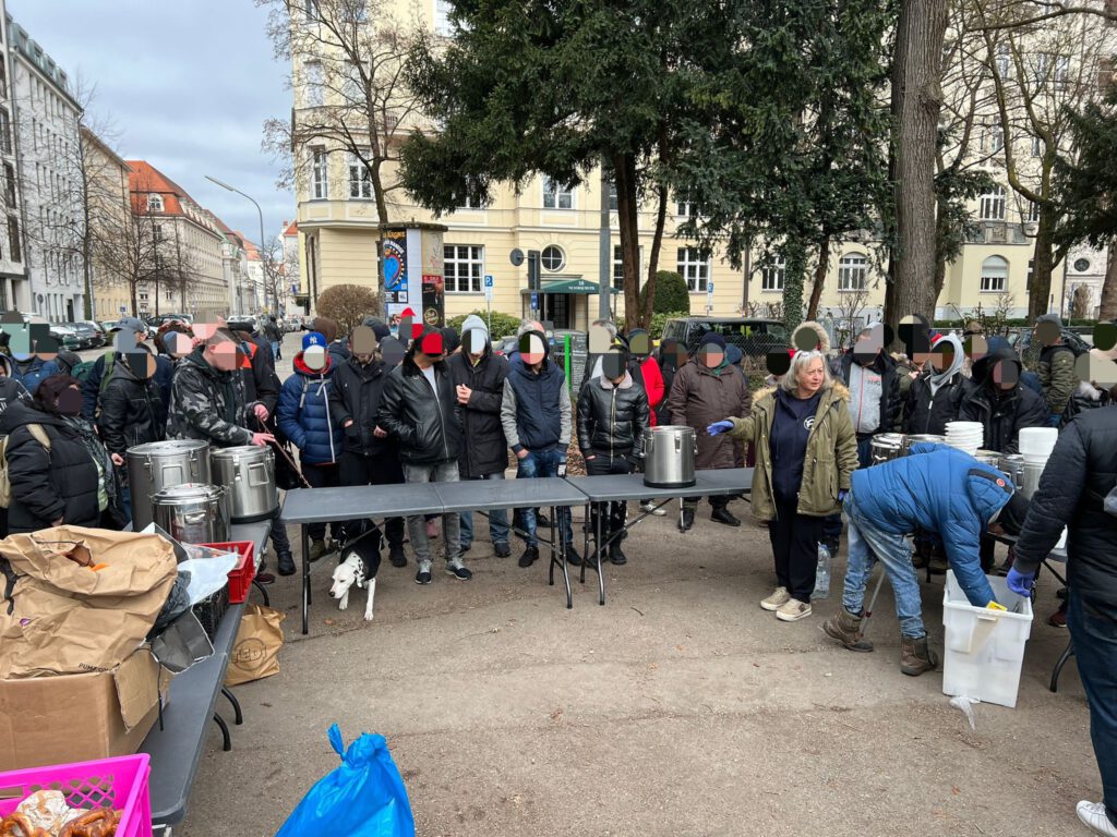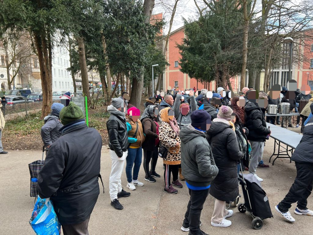 Gestern ging es wie gewohnt mit vier vollgepackten Fahrzeugen, unzähligen Kisten Obst und Gemüse und 200 Liter warmen Speisen, auf Tour.