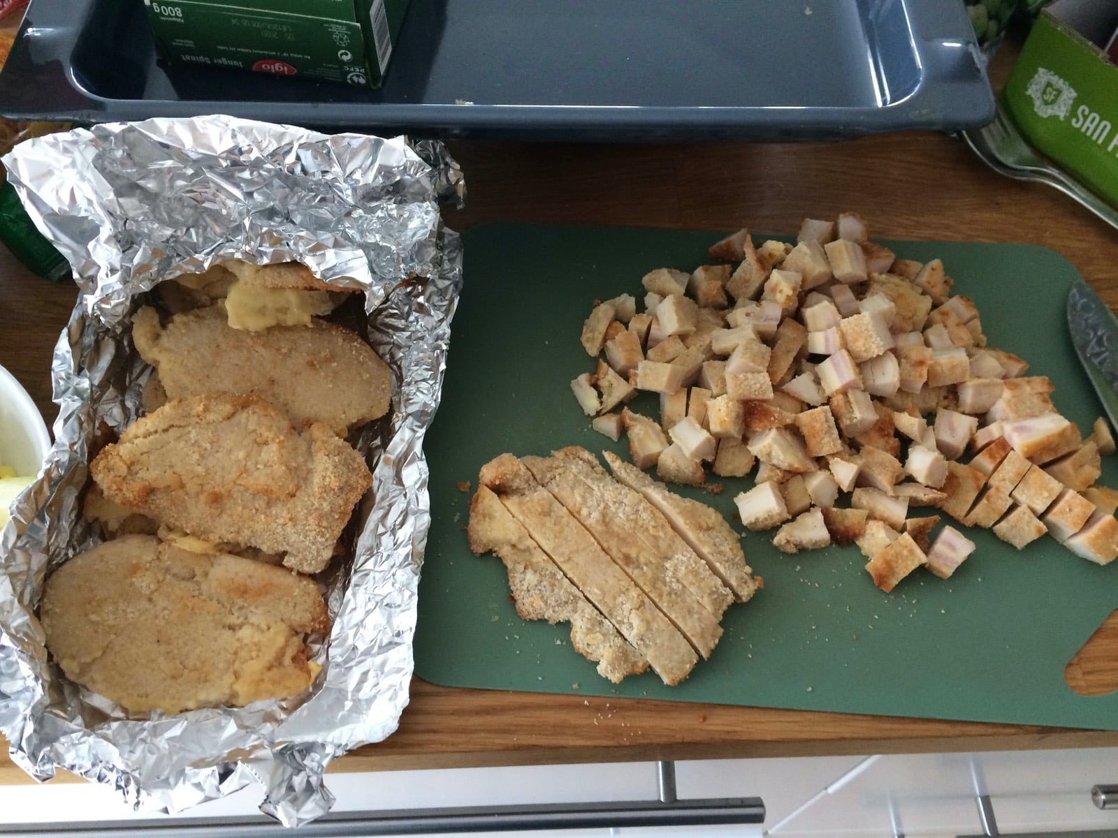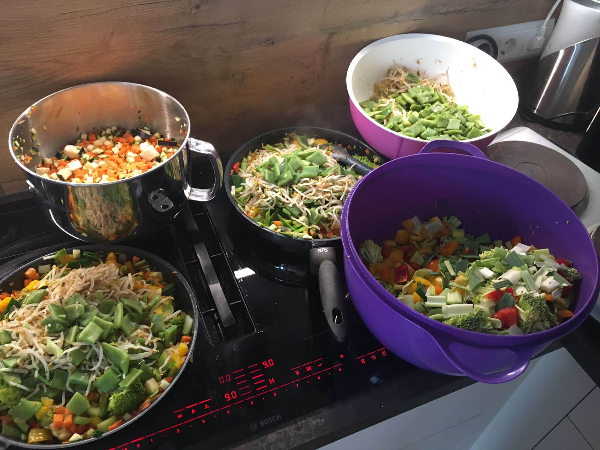 So gab es gestern einen vegetarischen Nudeltopf von Steffi, Wockgemüse mit gebratenen Nudeln und Hänchen von Andrea, Cordon Bleu` mit Nudeln und Gemüse von Frances. Johanna bereitete aus der Spende der Hofmetzgerei zur oberen Mühle ein Geschnetzeltes mit Reis zu. Von Sigi und Peter gab es deftige Kartoffelsuppe mit Geflügelwiener und 4 Kilo frisches Brot dazu. Andrea backte leckere Kuchen und Muffins und auch Silke stand den ganzen Samstag in der Küche um noch viele weitere Muffins für die Tour zu backen. Laura schmierte Brote mit unterschiedlichen Belägen, die wir als Proviant verteilen durften.