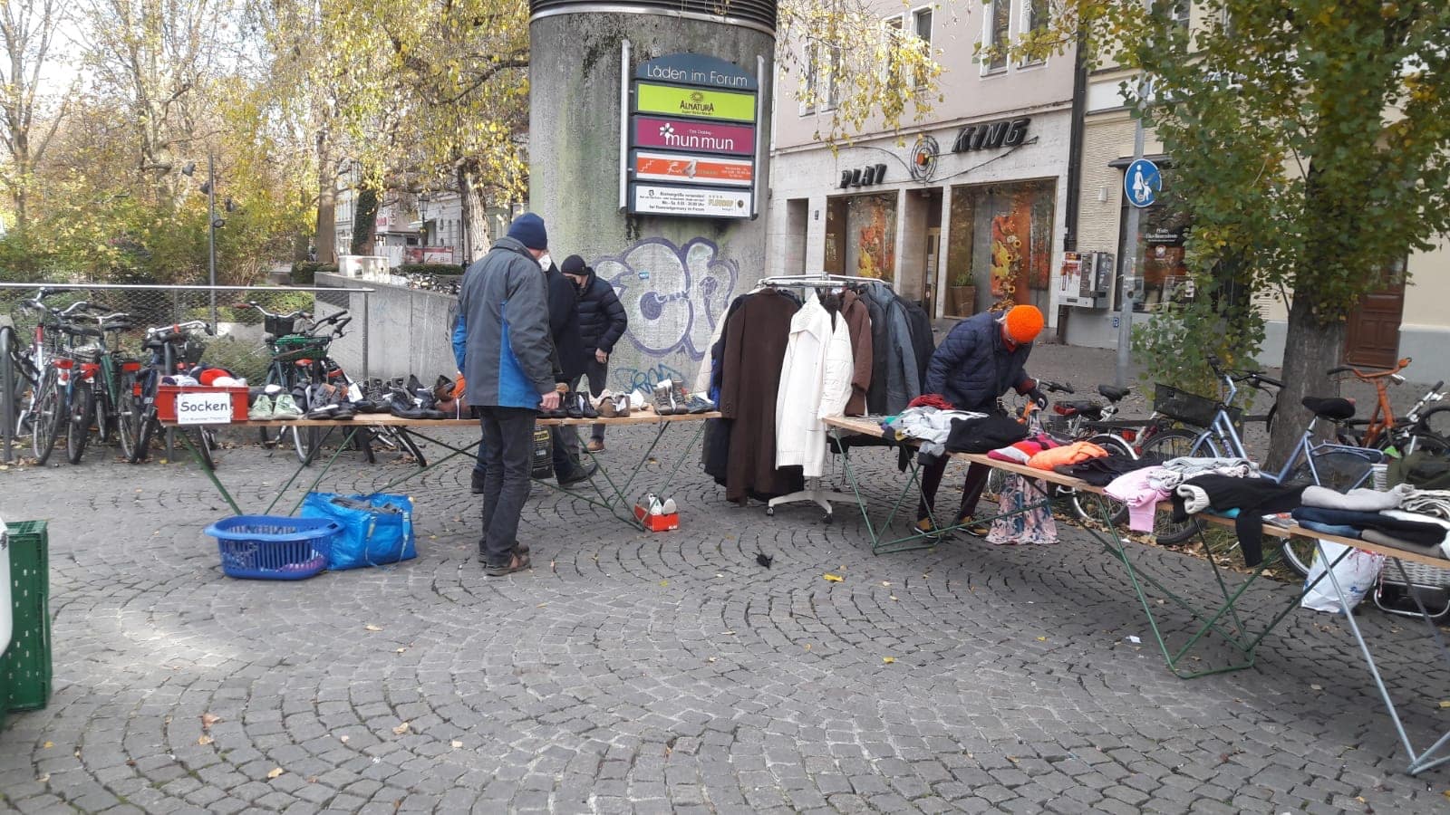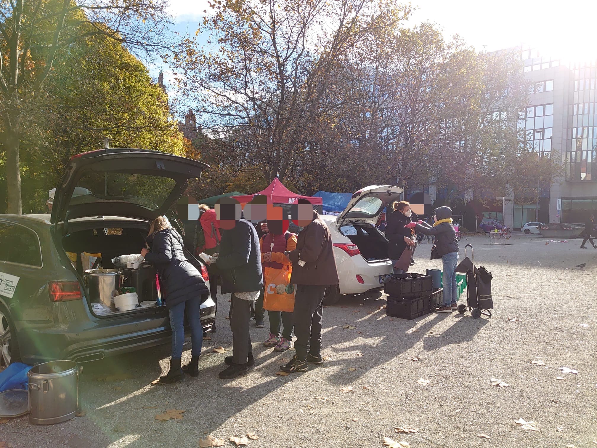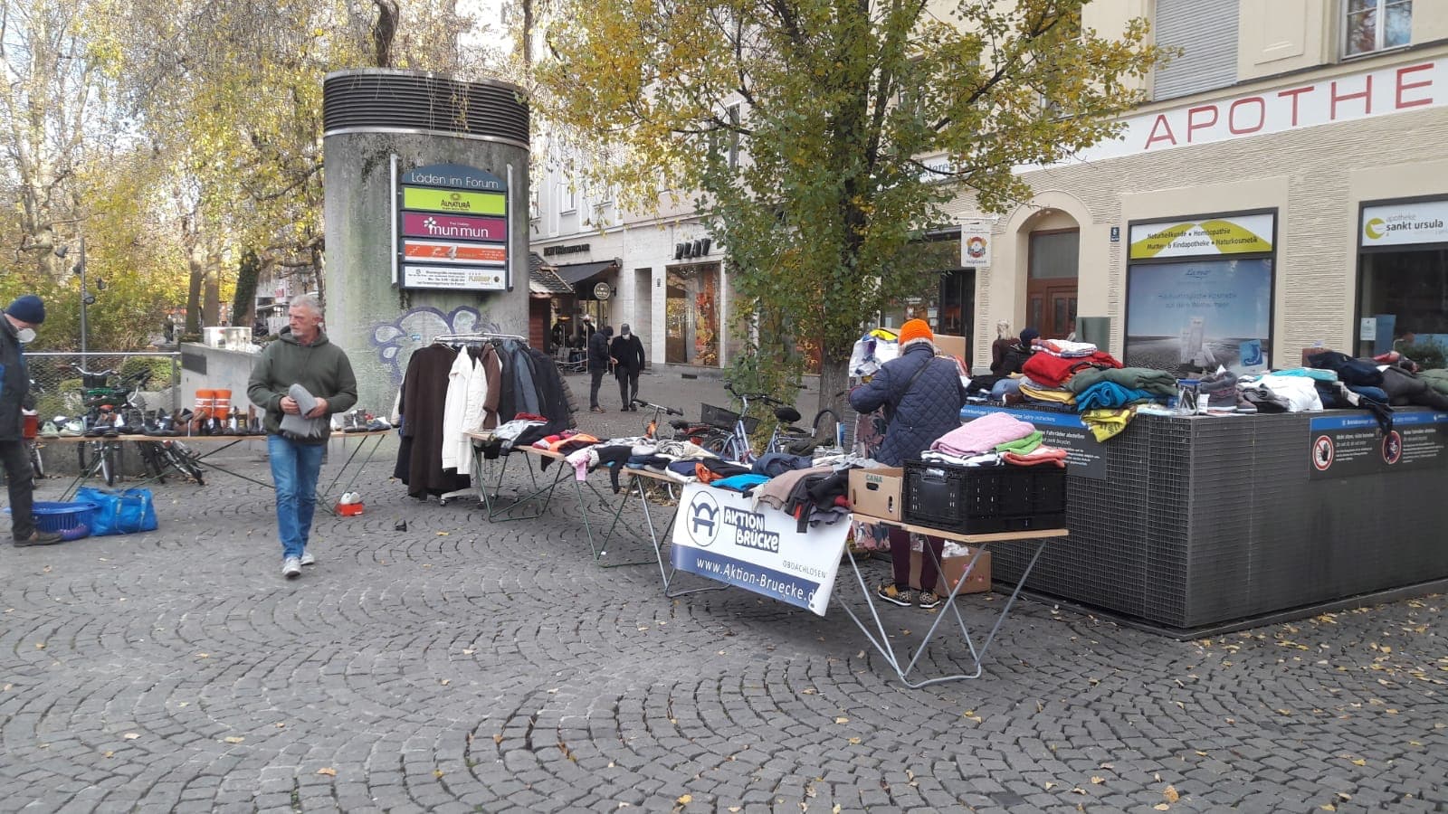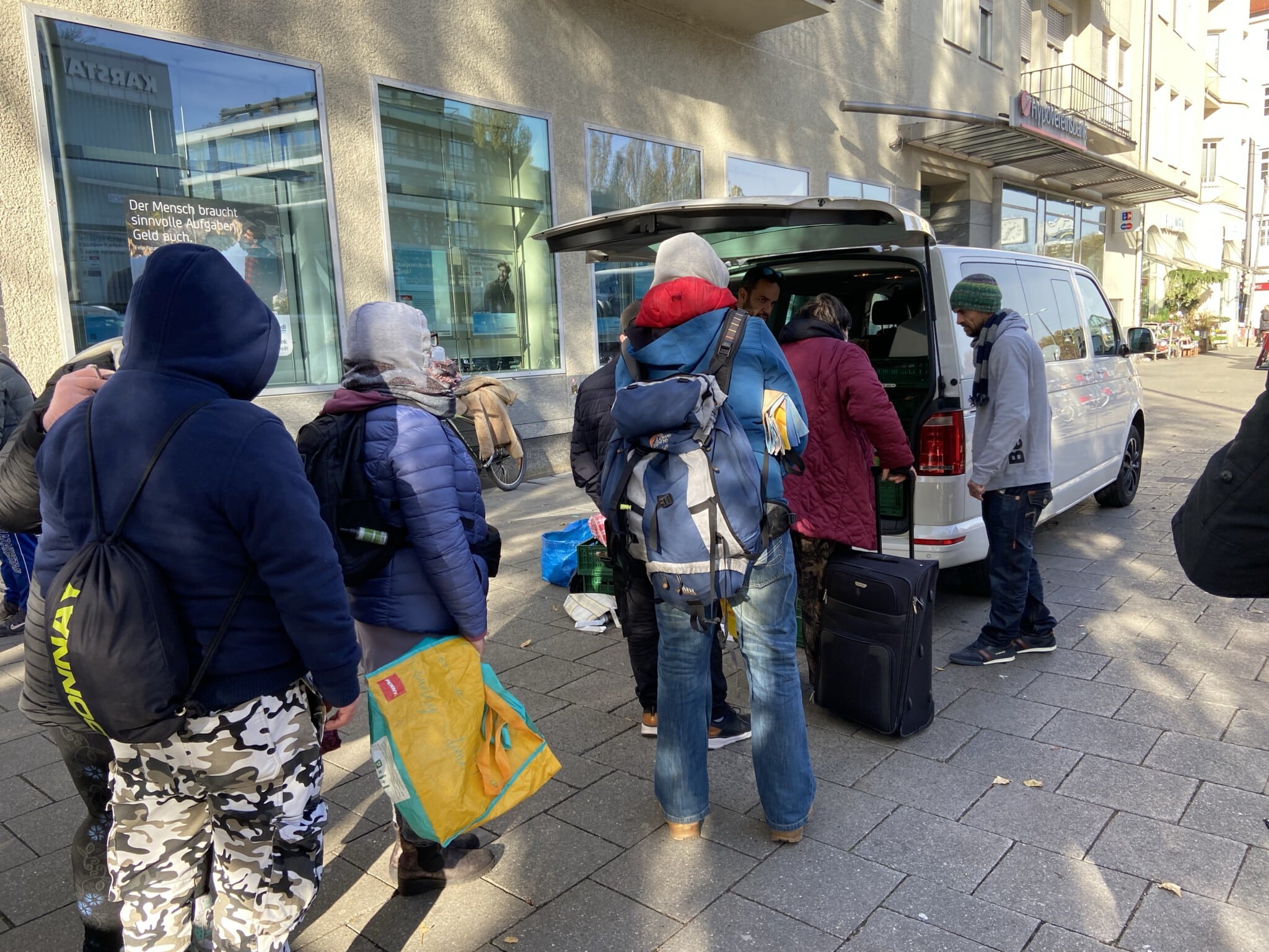 Unseren Stand an der Münchner konnten wir zum Glück, doch noch rechtzeitig voll besetzen und unser Team Erich, Dieter, Rosi und Ulrike versorgte wieder, die geduldig wartende Gäste mit warmen Kleidungsstücken, Schuhen, Schlafsäcken und Isomatten. Rund 250 Menschen stehen jeden Sonntag an der Münchner Freiheit und freuen sich über unser Hilfsangebot.