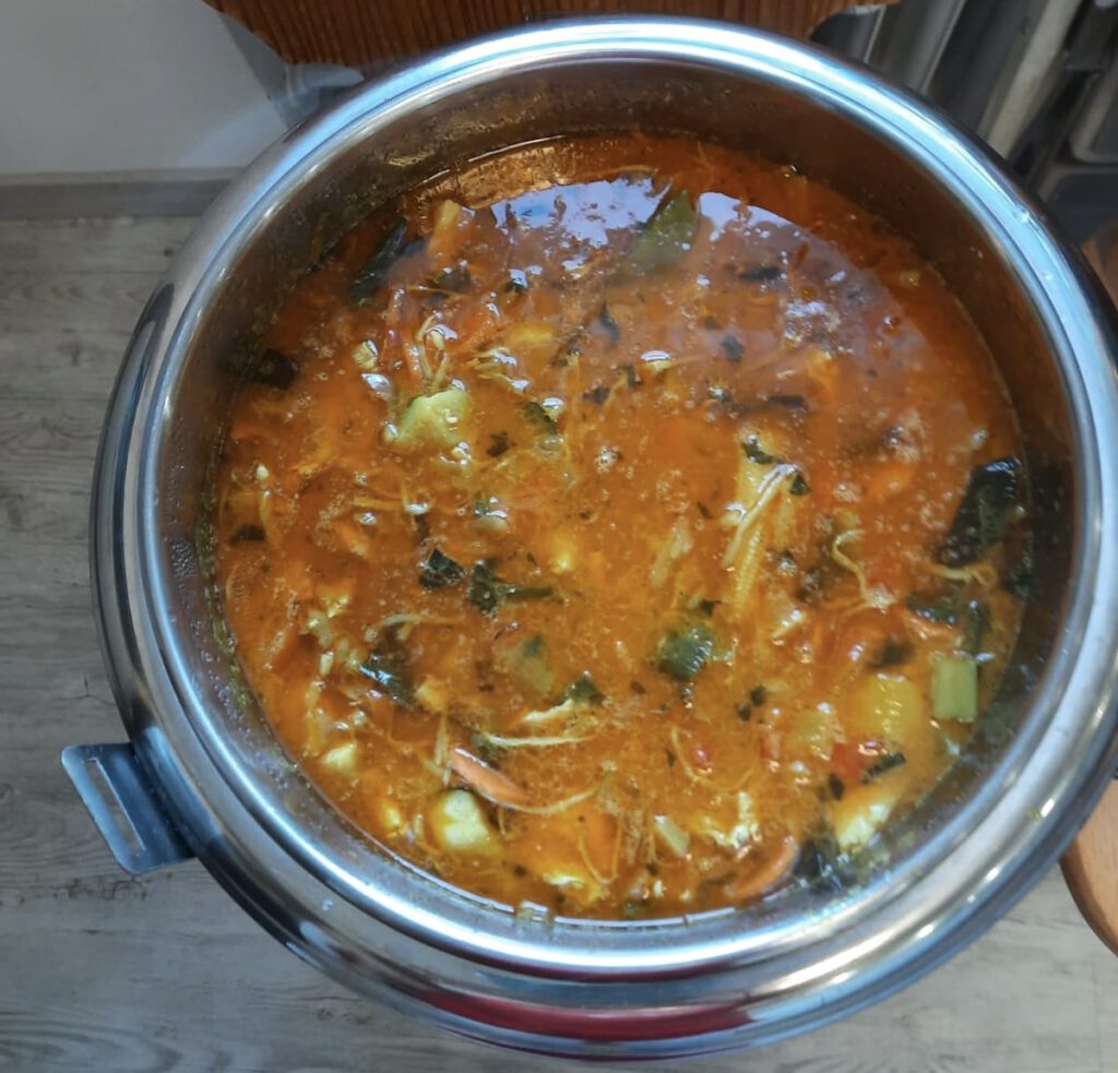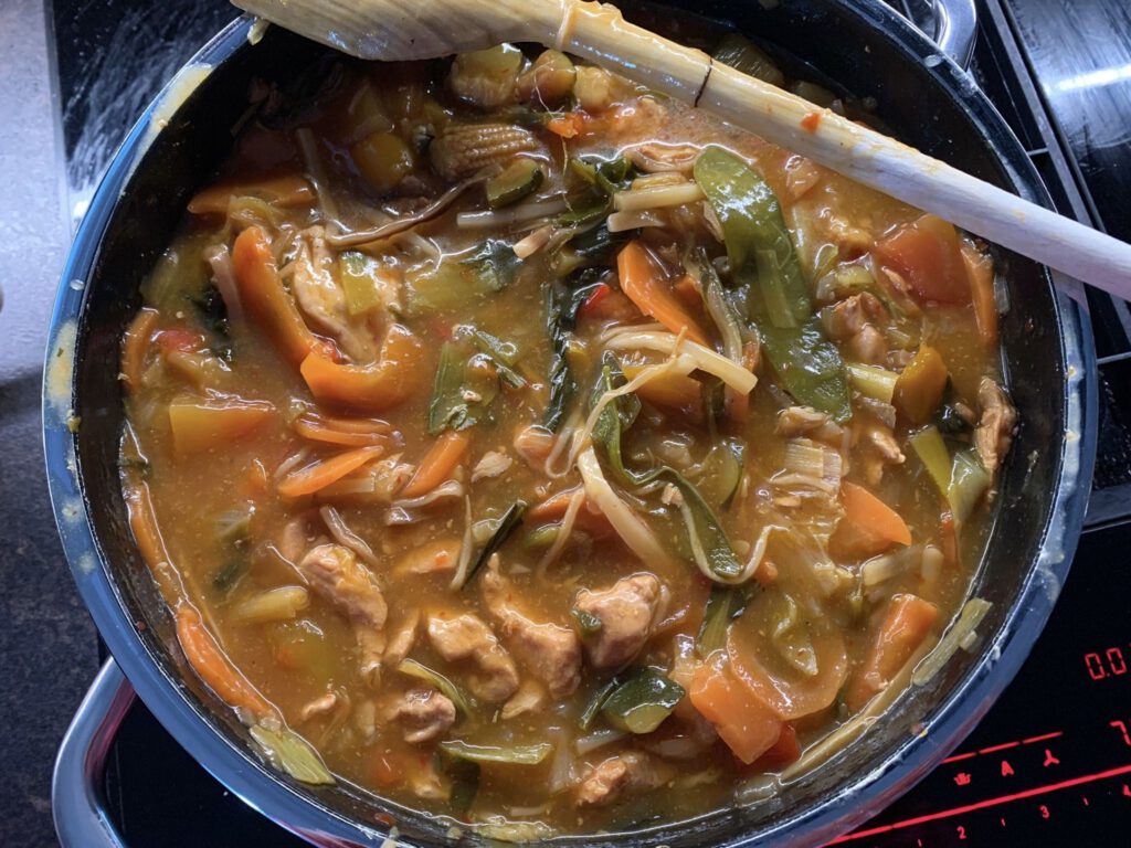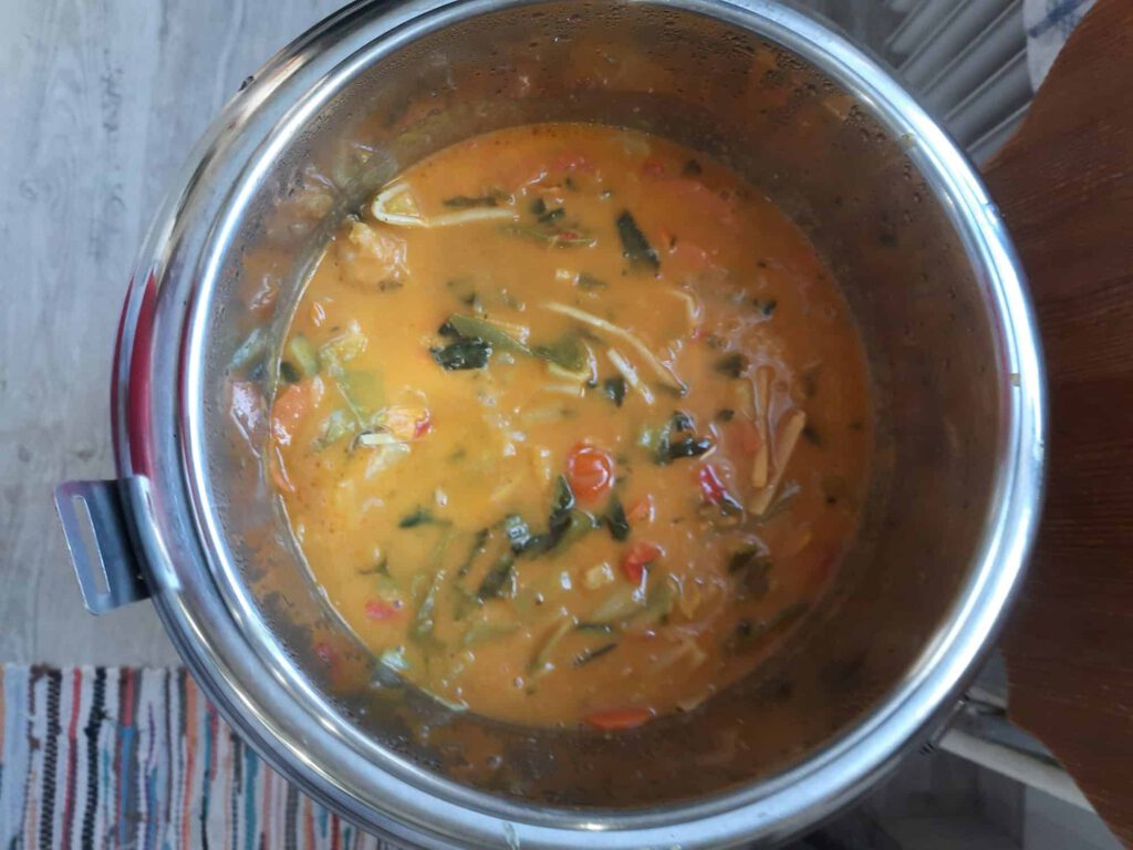 Auf dem gestrigen Speiseplan standen, Szegediner Gulasch, vegetarischer Asia Wok, ein Wok Gericht mit Garnelen, eine vegane Linsensuppe mit Tofu, ein Lammcurry, ein Hähnchencurry und ein buntes Fischcurry, dazu gab es Reis. Summarum haben wir auch gestern wieder 200 Liter warme Speisen verteilt.