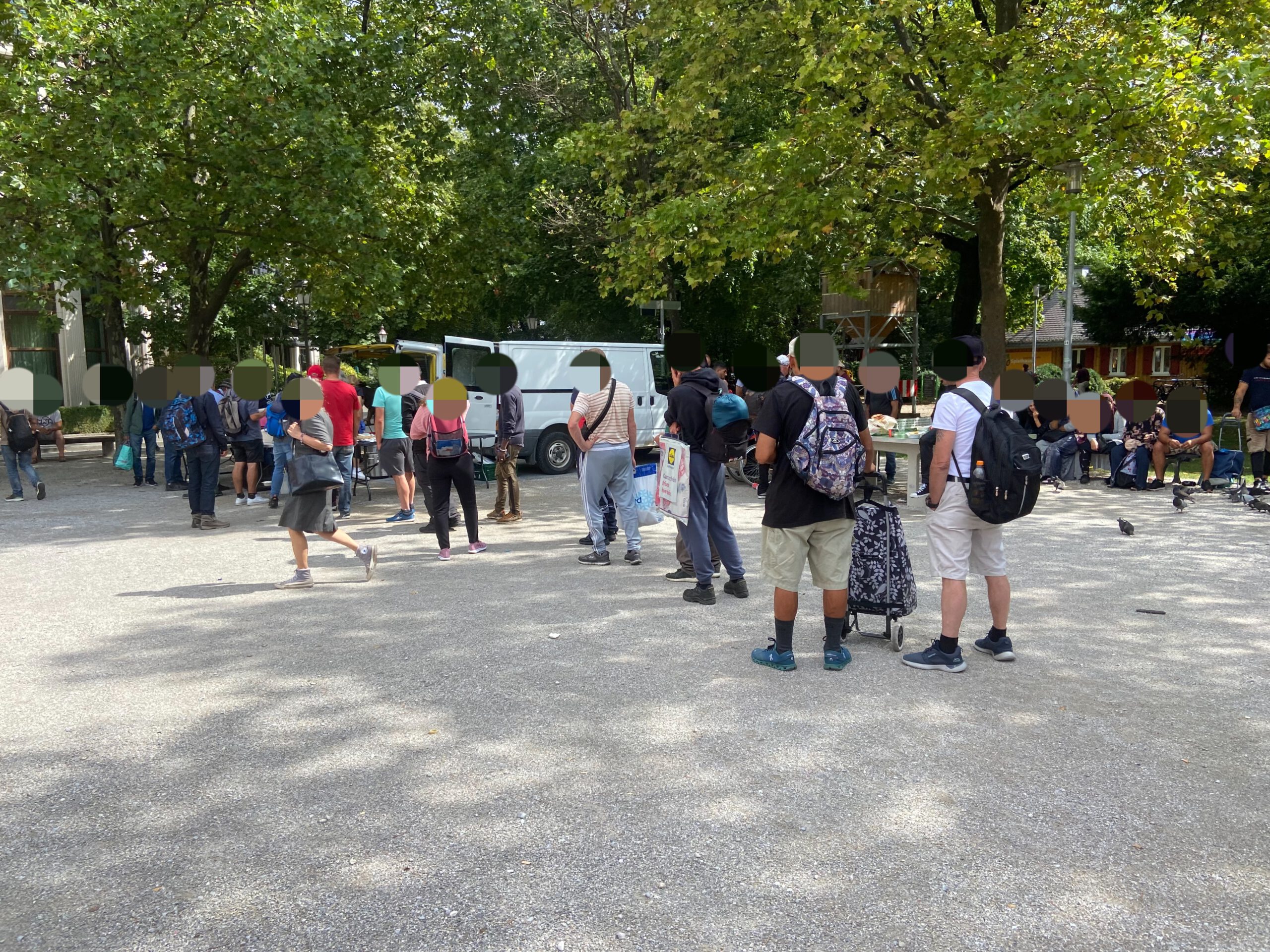 Viele hungrige Menschen bildeten lange Schlangen um sich ein oder zwei Portionen frisch Gekochtes abzuholen. Auch wurden wieder viele Carepakte mit Lebensmitteln für die Woche gepackt und Kleidung in sämtlichen Größen verteilt.