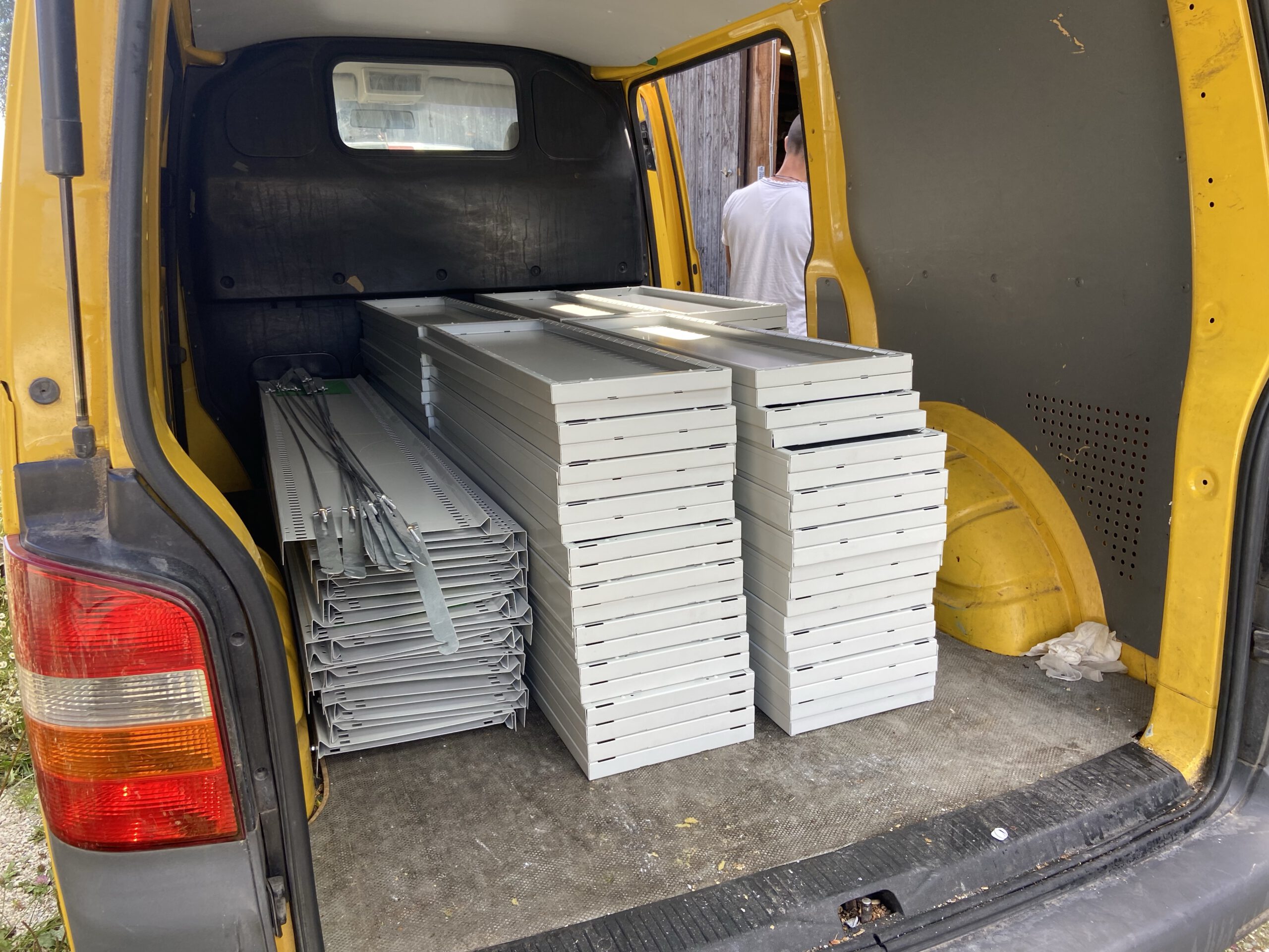 Heute holen Anja und Jorge noch weitere gebrauchte Lagerregale ab um all unsere tollen Spenden ordentlich einräumen zu können.