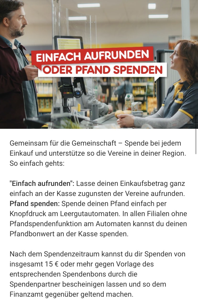 „Einfach aufrunden“: Lasse Deinen Einkaufsbetrag ganz einfach an der Kasse zugunsten der Vereine aufrunden, oder Spende Deinen Pfand.