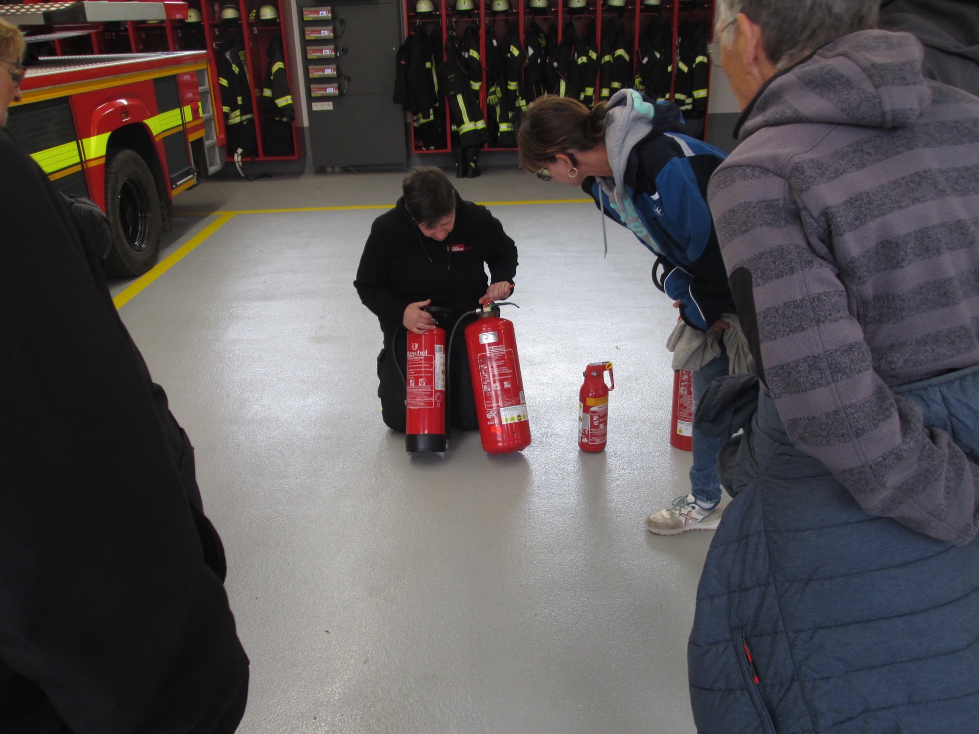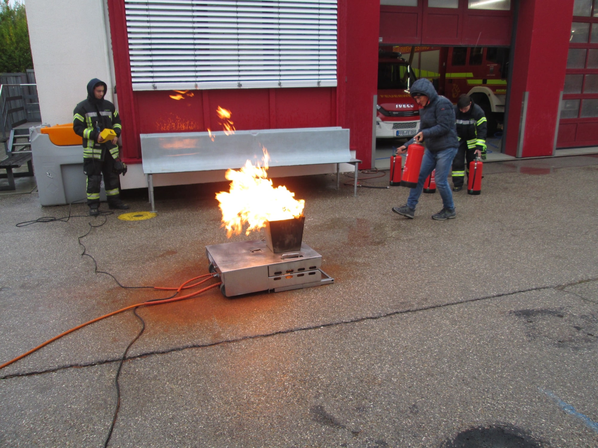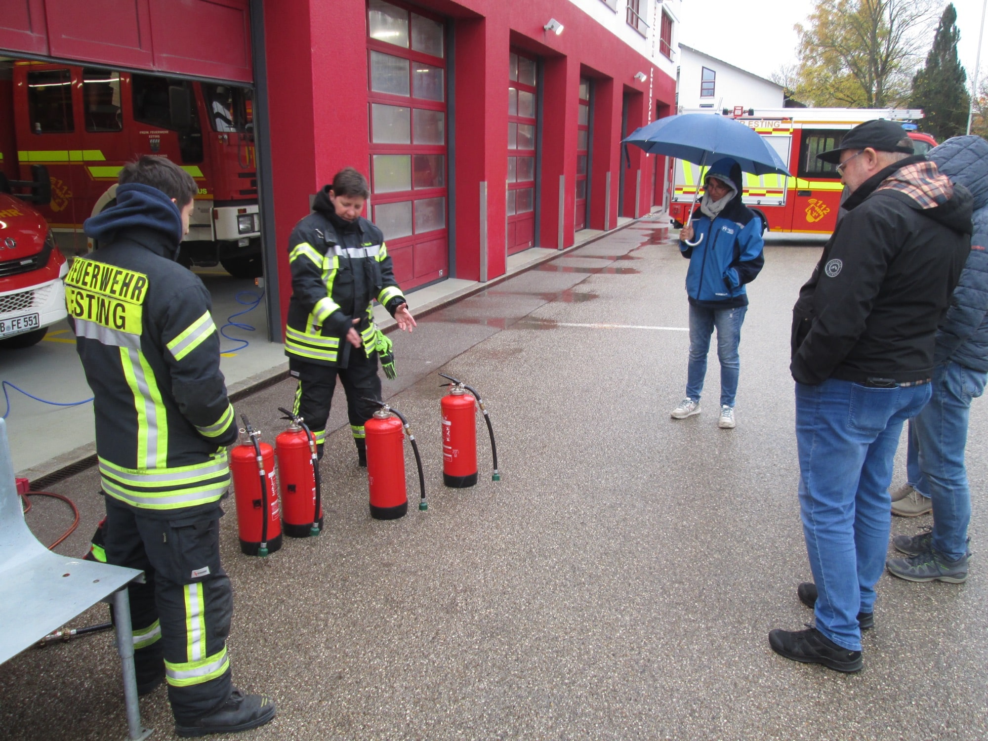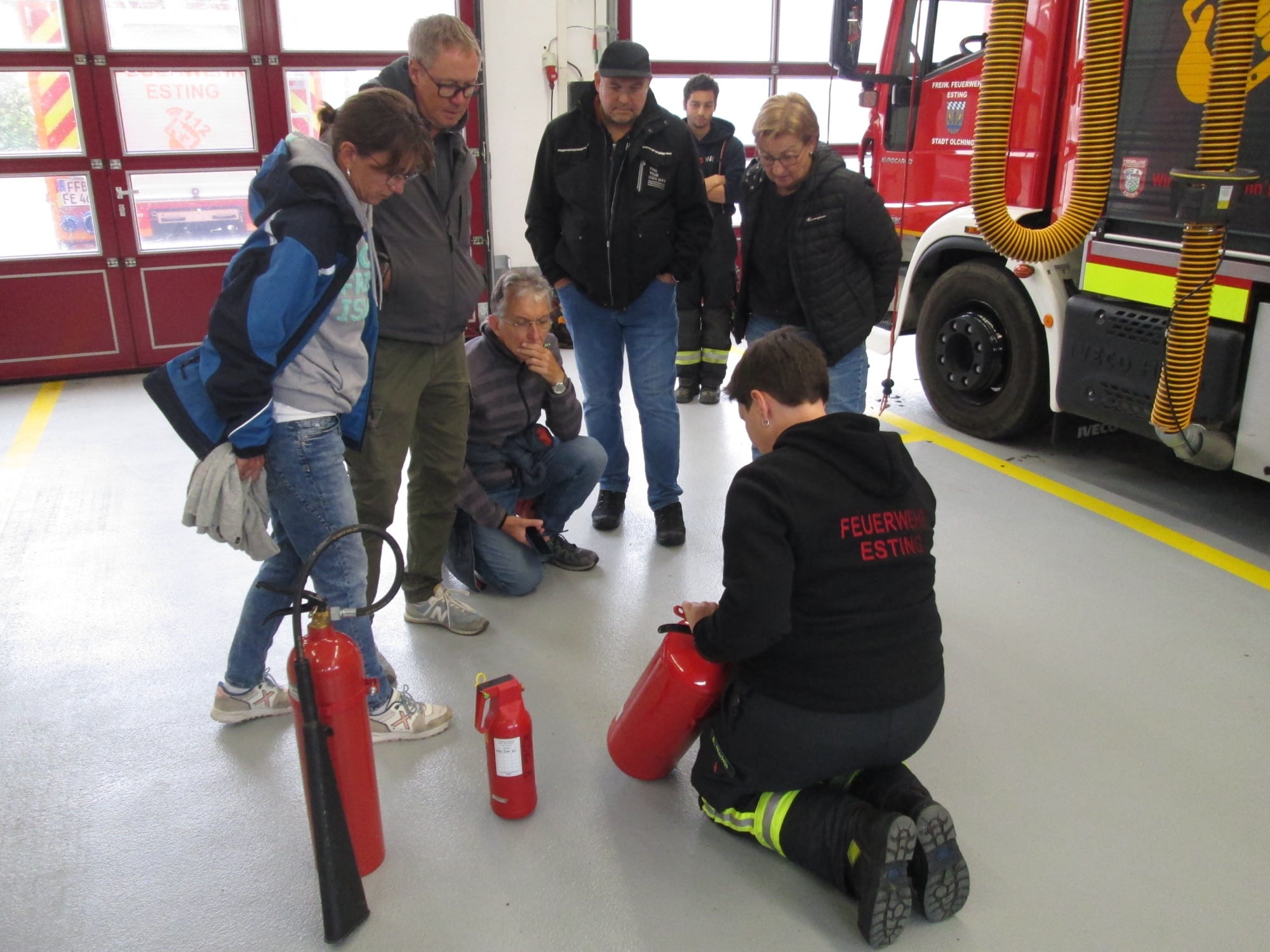 Die 1. Kommandantin der Freiwilligen Feuerwehr Esting Bianca Nierlein führte zunächst mit wichtigen Erklärungen in die Thematik ein, bevor jeder im praktischen Teil mit einem Feuerlöscher unter realistischen Bedingungen sein Können und die Anwendung des zuvor Erlernten unter Beweis stellen konnte.
