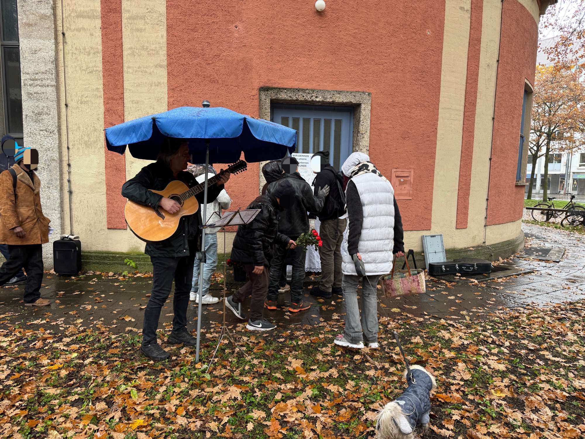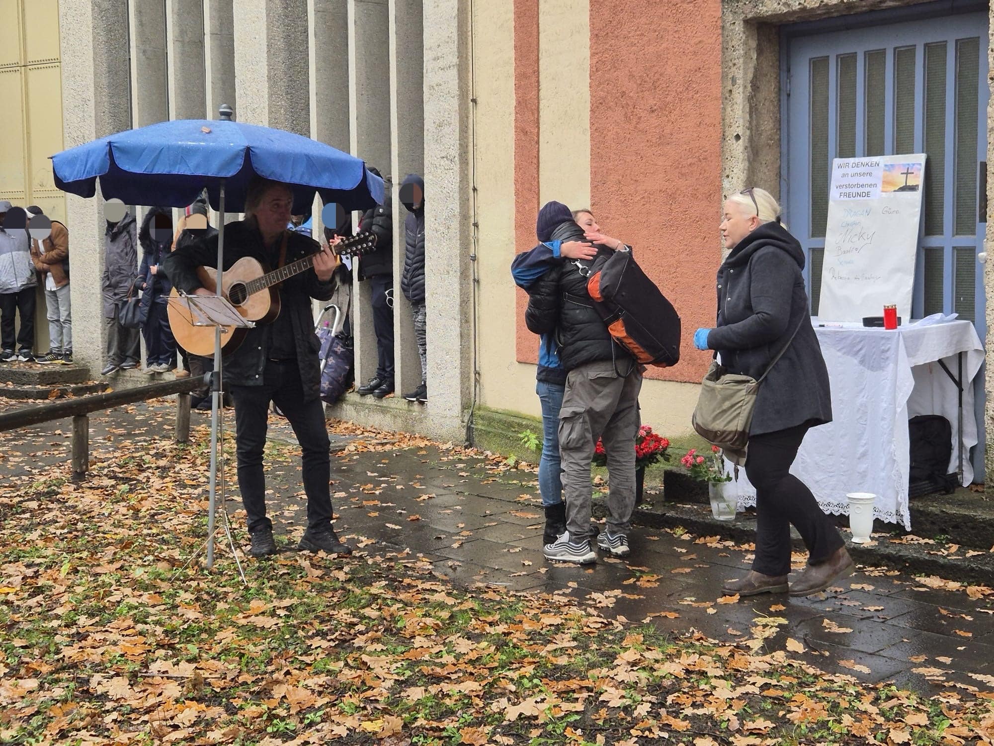Besonders bewegend war der Moment im Nussbaumpark. Unser ehemaliger Gefängnispfarrer Norbert gestaltete mit uns einen stillen Moment des Gedenkens für all jene, die uns in diesem Jahr verlassen haben. Es regnete in Strömen und doch herrschte eine besondere Ruhe. Viele unserer Gäste schrieben die Namen verstorbener Freunde und Weggefährten auf eine Tafel, zündeten Kerzen an und stellten Rosen in eine Vase.