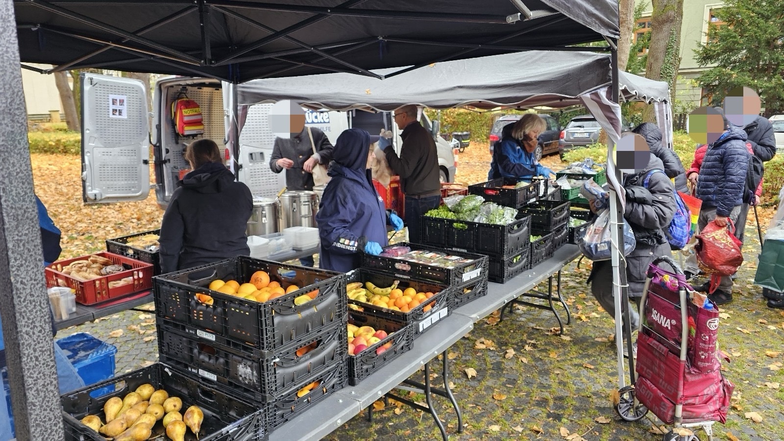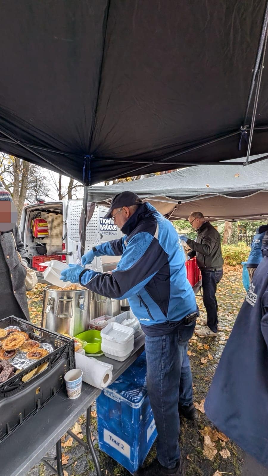 Überall gab es viele dankbare Gesichter und wertvolle Begegnungen. Die Pavillons waren im Nu aufgebaut, fast schon eingespielt, denn auch unsere Gäste wissen inzwischen, wie es geht. Es ist schön zu sehen, wie selbstverständlich dieses Miteinander geworden ist. Obst, Gemüse, Kaffee, Kuchen und warme Mahlzeiten wurden reichlich verteilt, begleitet von vielen netten Gesprächen und einem spürbaren Zusammenhalt.