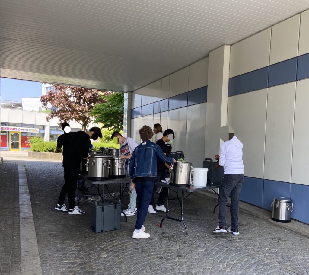 Frau Schmelz, die Klassenleiterin der sogenannten Deutschklasse, wurde Anfang März durch Zufall bei unserer Ausgabe am Gollierplatz als Passantin auf uns aufmerksam und schlug das Projekt vor.
