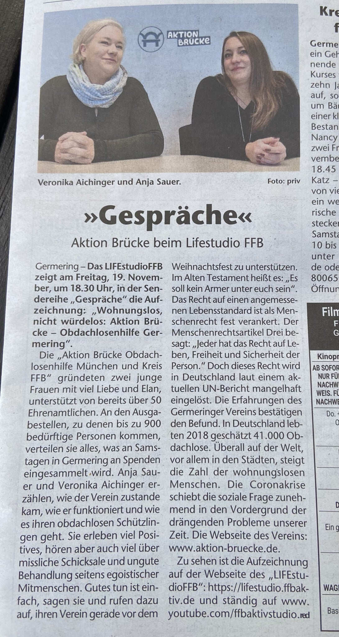 Zu sehen ist die Aufzeichnung auf der Webseite des „LIFEstudioFFB“: https://lifestudio.ffbaktiv.de