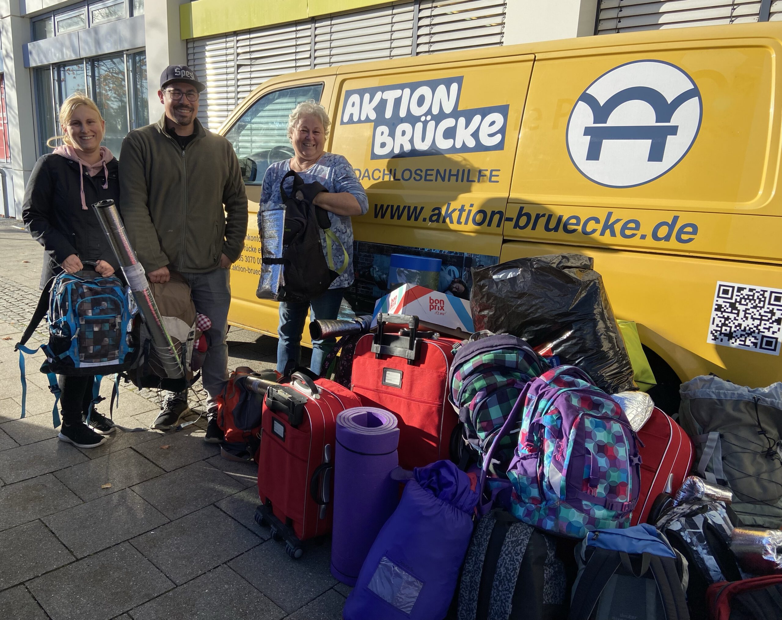 Mit freudiger Erwartung auf den gestrigen Tag und mit reichlich Essen, Lebensmitteln, Kleidung und Hygieneartikeln im Gepäck.