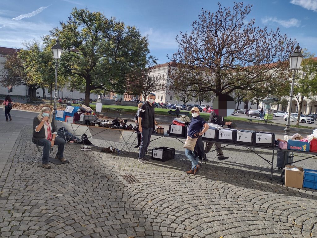 Unser Team mit Wolfram und Christine, Dieter, Hilde und Lukas, war auch wieder mit dem Kleiderverteilungsstand an der Uni vertreten.