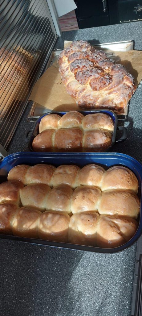 Zusammen mit unseren Gästen hatten wir in Windeseile die Tische aufgebaut, sodass wir zügig mit der Ausgabe von z. B. leckerem Lammeintopf, süßer Nachspeise wie selbst gebackenem Kuchen, Kaffee und Lebensmitteln beginnen konnten.