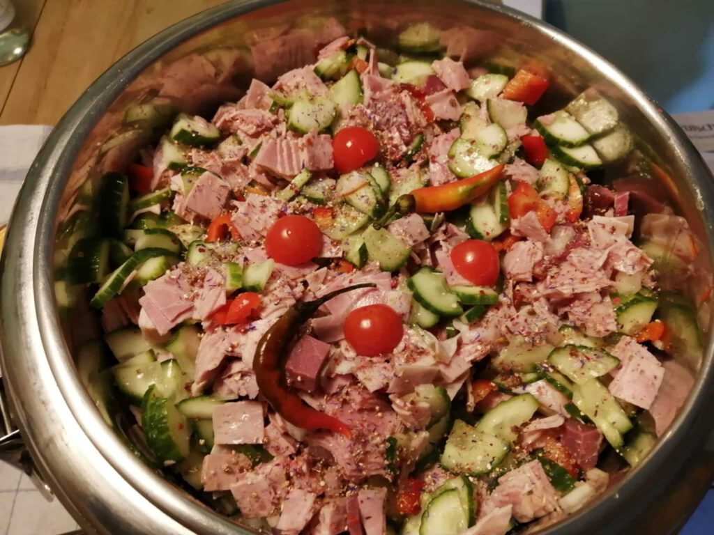 Zu Essen gab es u.a. Rahmschwammerl mit Semmelknödel, einen Gemüseeintopf mit Fleisch, einen Lammeintopf mit Gemüse und Buchweizen, ein Thaicurry mit Reis und einen bunten Wurstsalat.