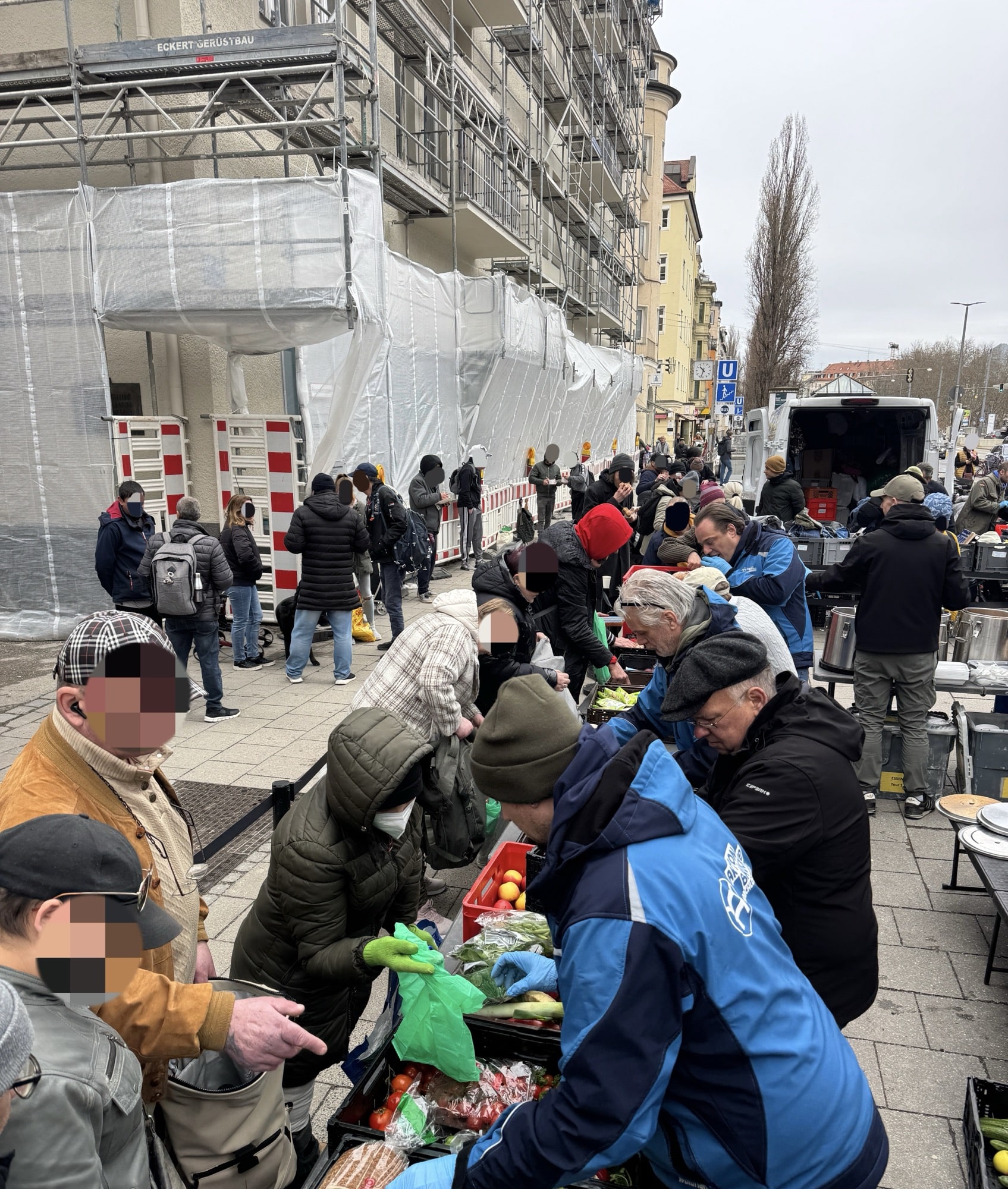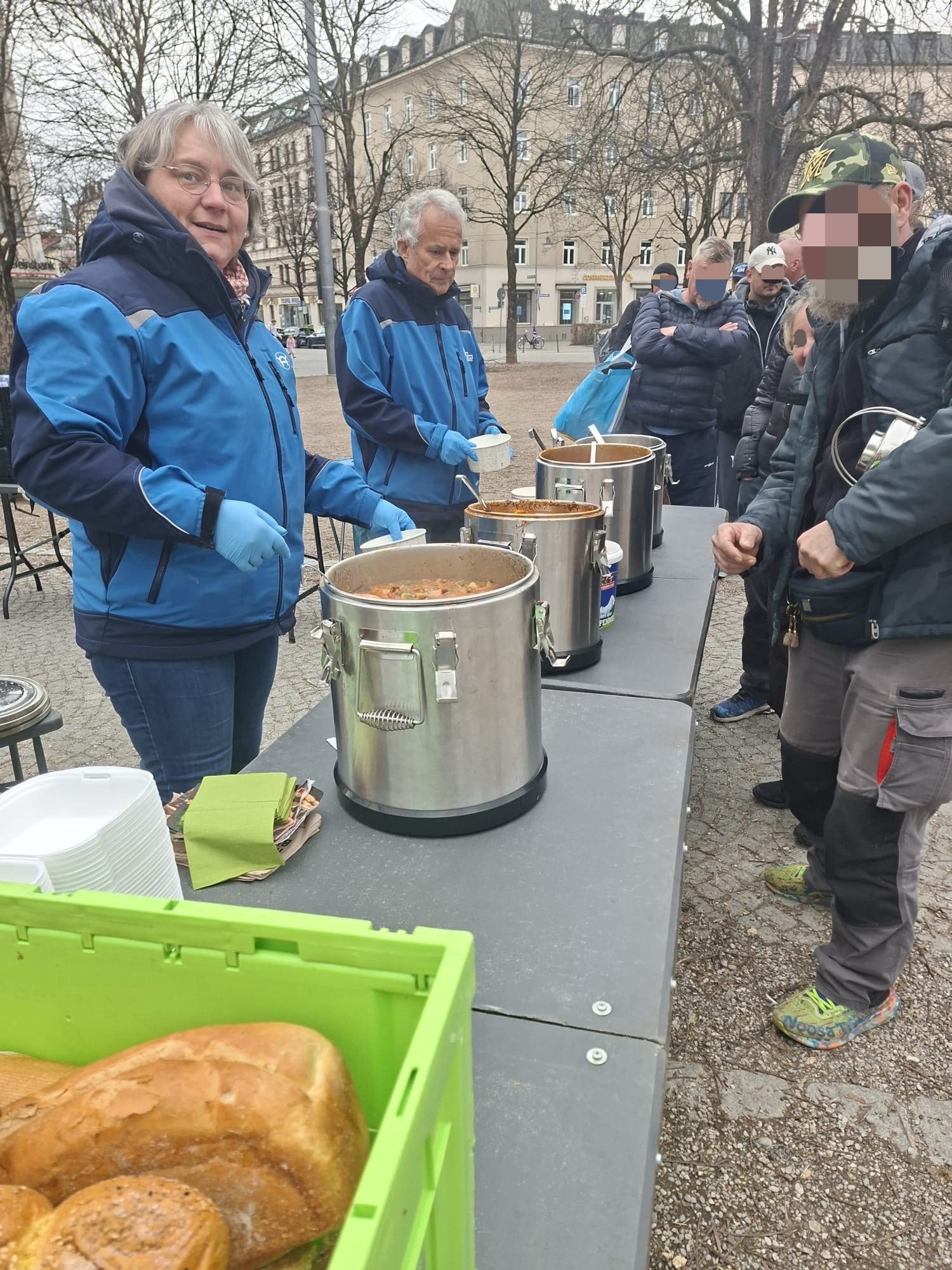 Eine andere Station war dagegen sehr gut besucht. Neben Essen, Getränken und dem Nötigsten gab es dort auch wieder einen stillen Moment des Gedenkens an einen Menschen aus dem Kreis unserer Gäste, der kürzlich verstorben ist. Diese Augenblicke des Innehaltens haben inzwischen einen festen Platz bekommen. Sie erinnern daran, dass hinter jedem Schicksal ein Mensch mit einer eigenen Geschichte steht, der nicht vergessen werden soll.