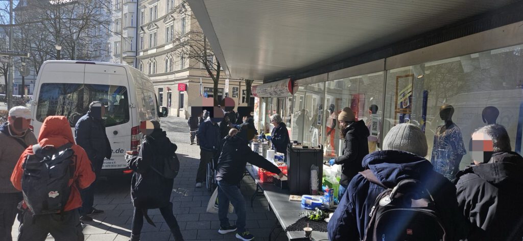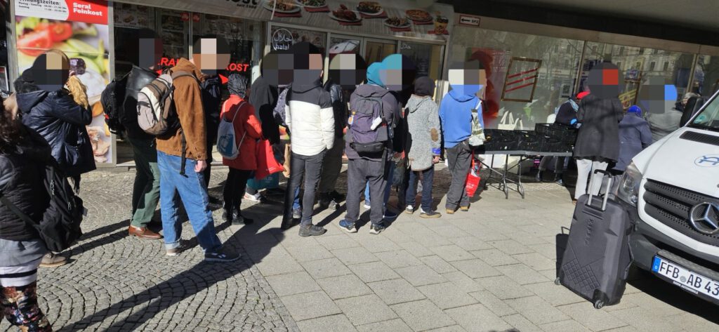 Auf allen drei Touren und an unserem Stand an der Universität konnten wir unglaublich viel Zulauf feststellen. Das Monatsende war deutlich spürbar und wir mussten, gerade das warme Essen gut rationieren, damit wirklich jeder etwas in den hungrigen Magen bekommt.