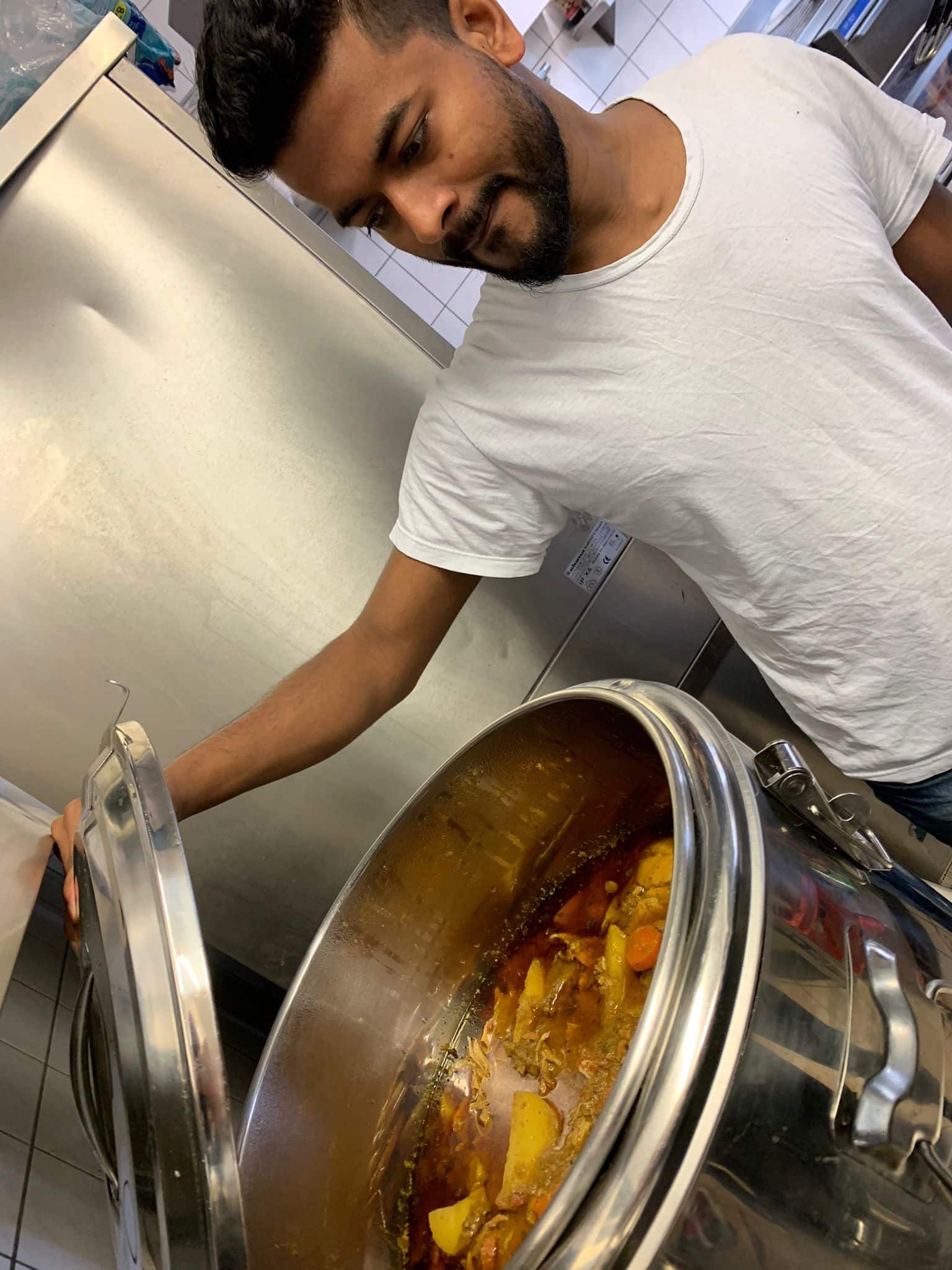 Unser Touren-Team brach gestern schon ein wenig früher auf als gewohnt und holte wie immer die warmen Speisen bei unseren Köchinnen sowie zusätzliche 60 Liter indischen Eintopf bei Feuer & Flamme ab.