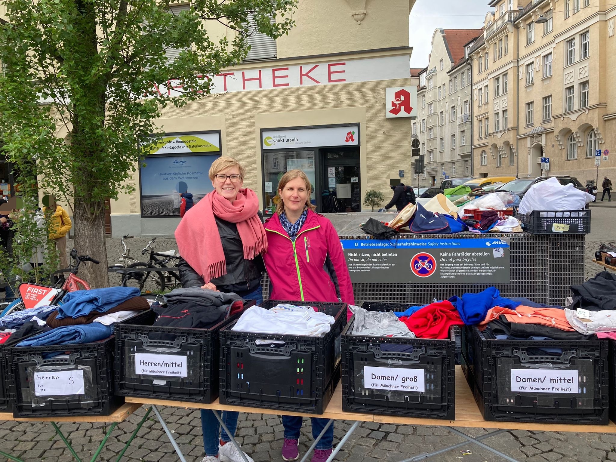 Abschließend dürfen wir uns über 3 neue Teammitglieder freuen. Simone und Manu, die wir am Samstag bei unserer Spendenannahme kennenlernen durften, werden uns in Zukunft an der Münchner Freiheit unterstützen und auch Susanne, die uns ebenfalls am Samstag tatkräftig mit der Sortierung der eingegangenen Spenden im Lager unterstützt hat, gehört nun fest zum Brücke-Team. Vielen Dank, dass Ihr den Weg zu uns gefunden habt. Wir freuen uns sehr auf die zukünftige gemeinsame Zeit.