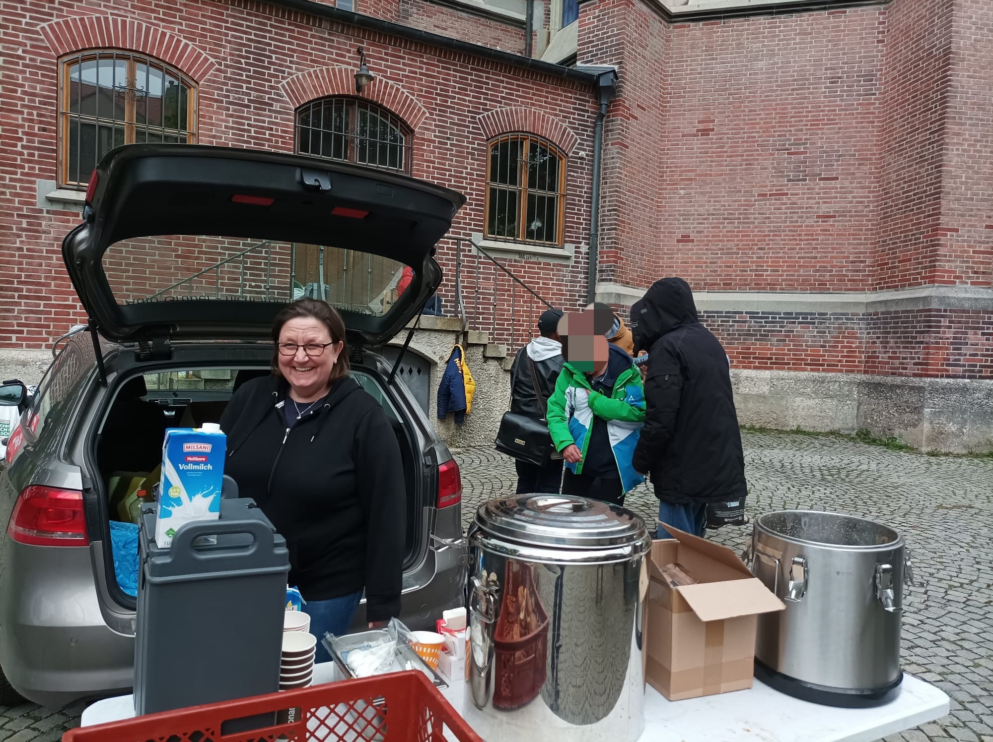 Unser Touren-Team brach gestern schon ein wenig früher auf als gewohnt und holte wie immer die warmen Speisen bei unseren Köchinnen sowie zusätzliche 60 Liter indischen Eintopf bei Feuer & Flamme ab.
