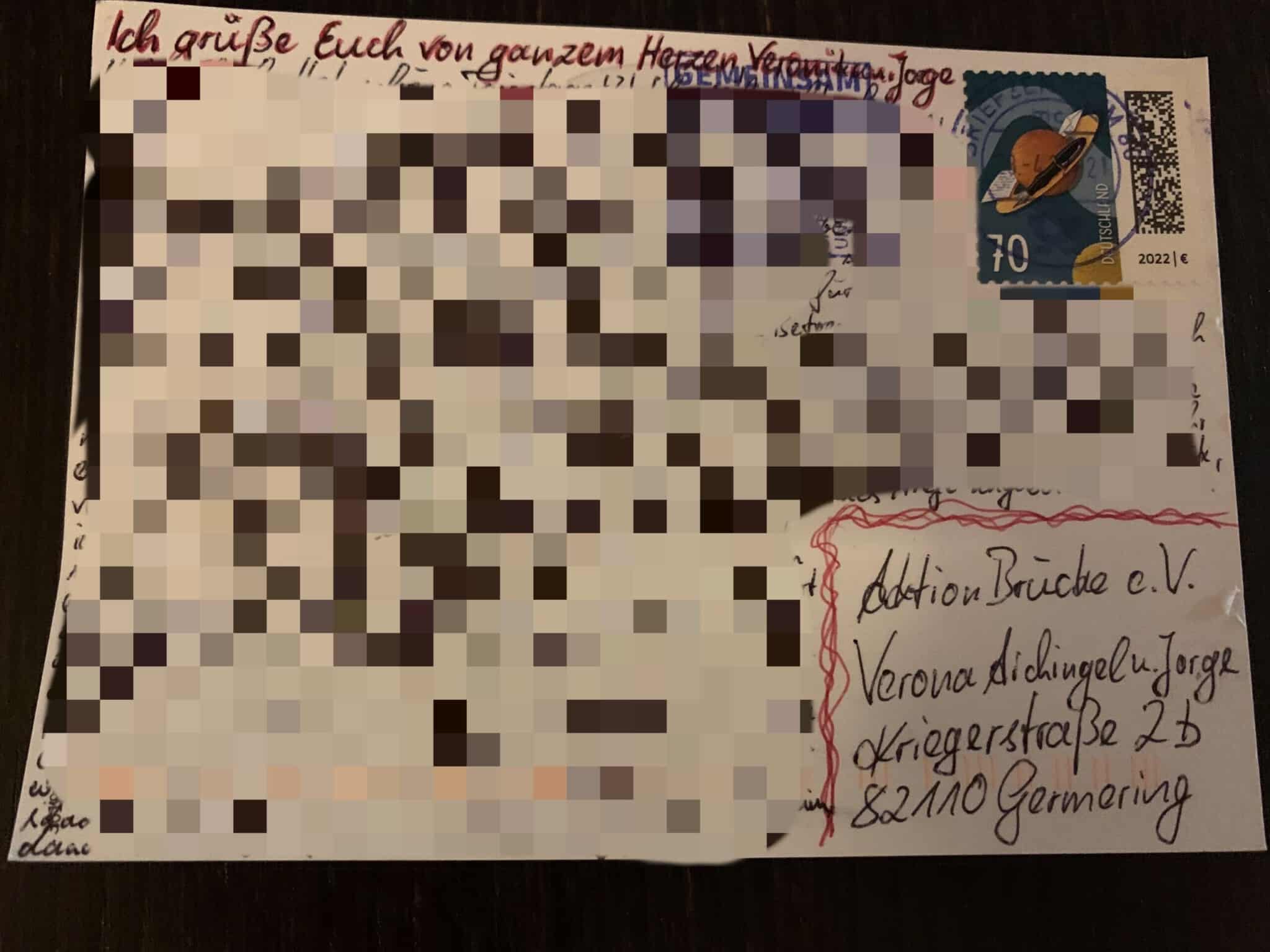 Vergangene Woche erreichte uns ein Hilferuf per Postkarte aus der JVA Stadelheim. Ein junger Mann den wir vergangenes Jahr an einer unseren Stationen kennenlernten, wand sich in dieser Postkarte an Vroni und Jorge. Der junge Mann wurde mittlerweile entlassen und wir freuen uns total darüber, dass sein erster Weg zu uns führte um nach Unterstützung zu bitten. Vroni nahm sofort telefonisch Kontakt auf. Er hat seine Strafe abgesessen und möchte nun ein besseres Leben beginnen. Gemeinsam suchen wir nach einer Lösung ihn dauerhaft dabei unterstützen zu können. Dieses uns entgegengebrachte Vertrauen schätzen wir sehr.