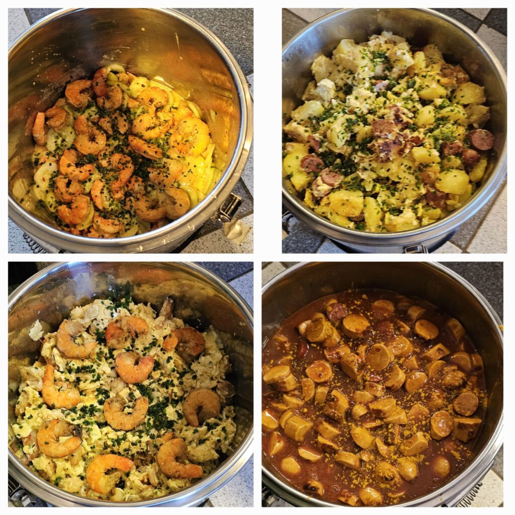 Sonntagmorgens um 3:00 steht der Großteil des Teams dann bereits fleißig am Herd um 300 Liter warme Mahlzeiten zu erhitzen, damit es am frühen Vormittag heiß und frisch für unsere Gäste auf den Tisch kommt.