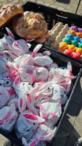 Unsere Gäste freuten sich sichtlich über die vielen frischen Lebensmittel, das Gemüse und vor allem über die kleinen Osterüberraschungen.